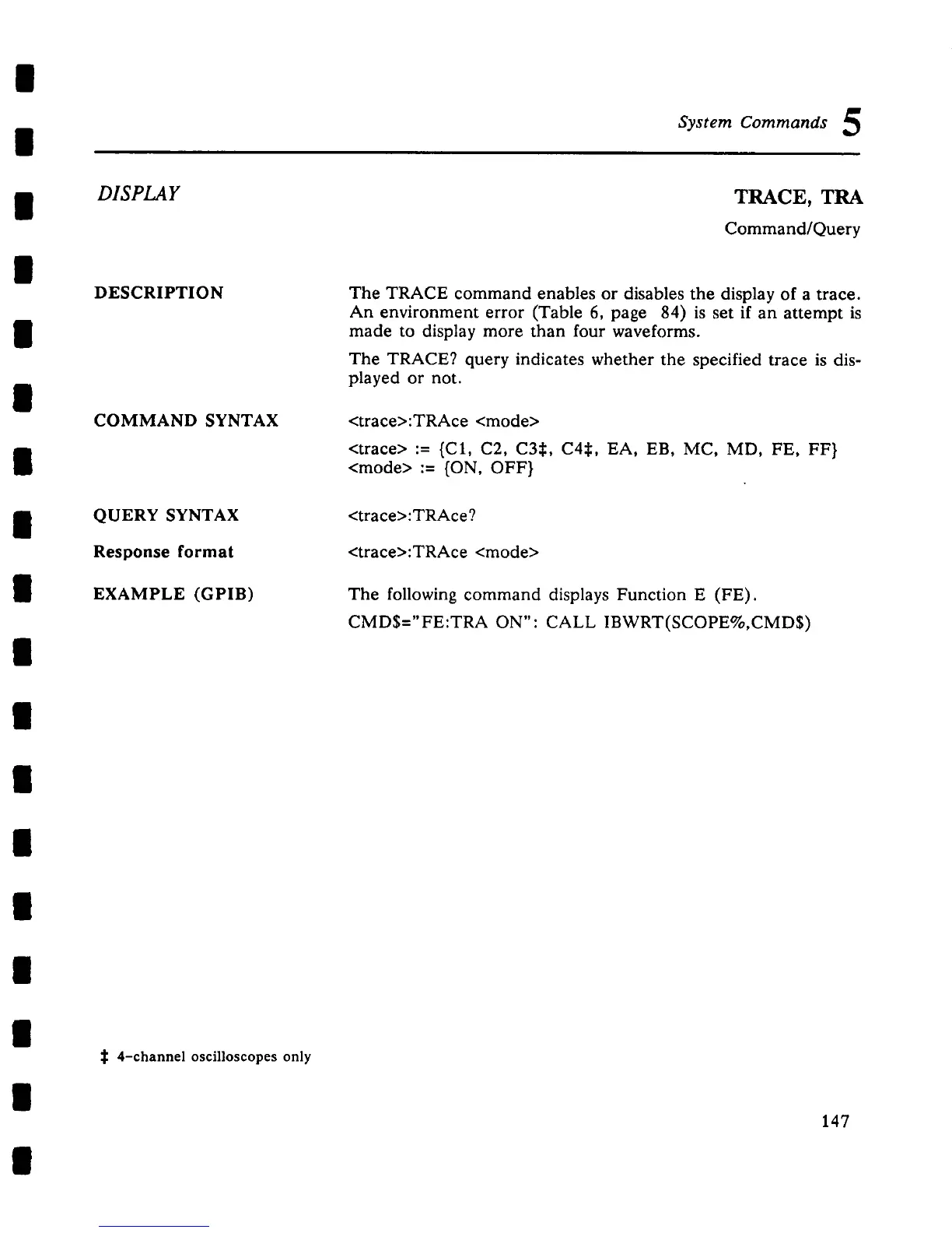The TRACE command enables or disables the display of a trace.