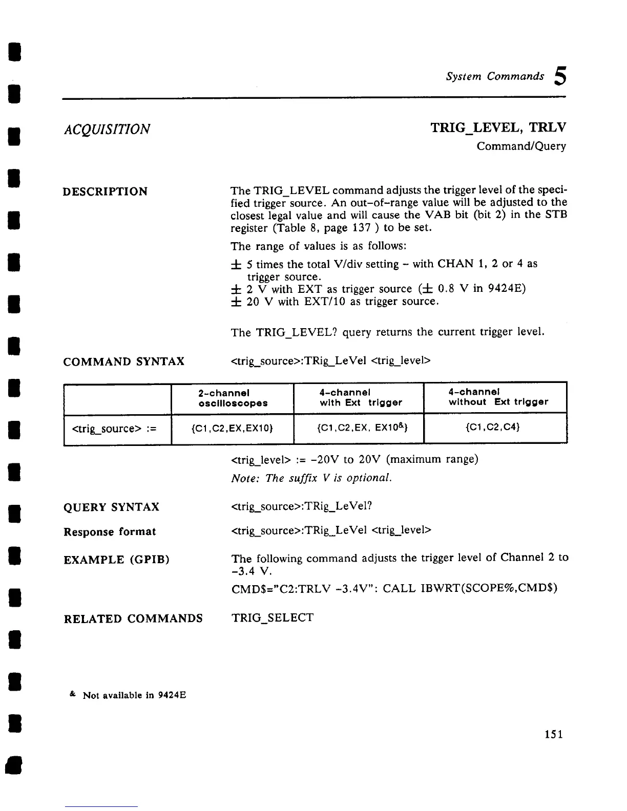 The TRIG LEVEL command adjusts the trigger level of the speci-