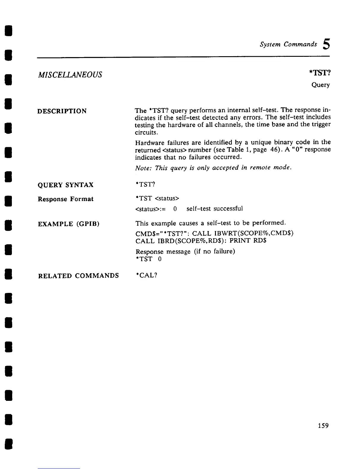 CMD$="*TST?’: CALL IBWRT(SCOPE%,CMD$)