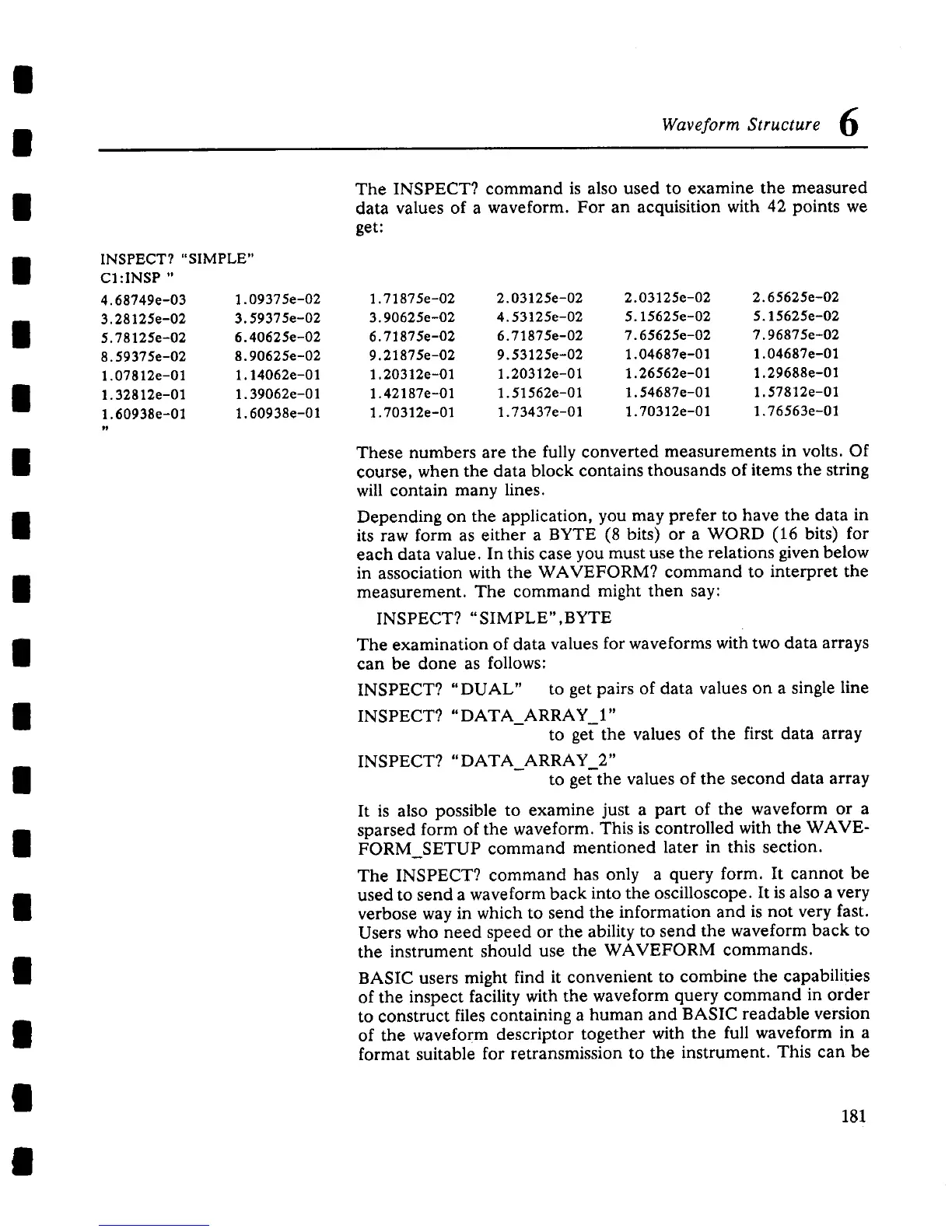The INSPECT? command is also used to examine the measured