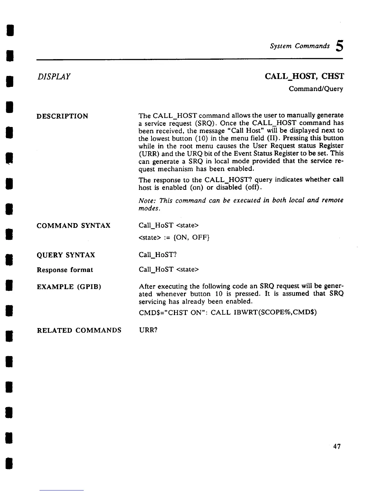 a service request (SRQ). Once the CALL_HOST command has
