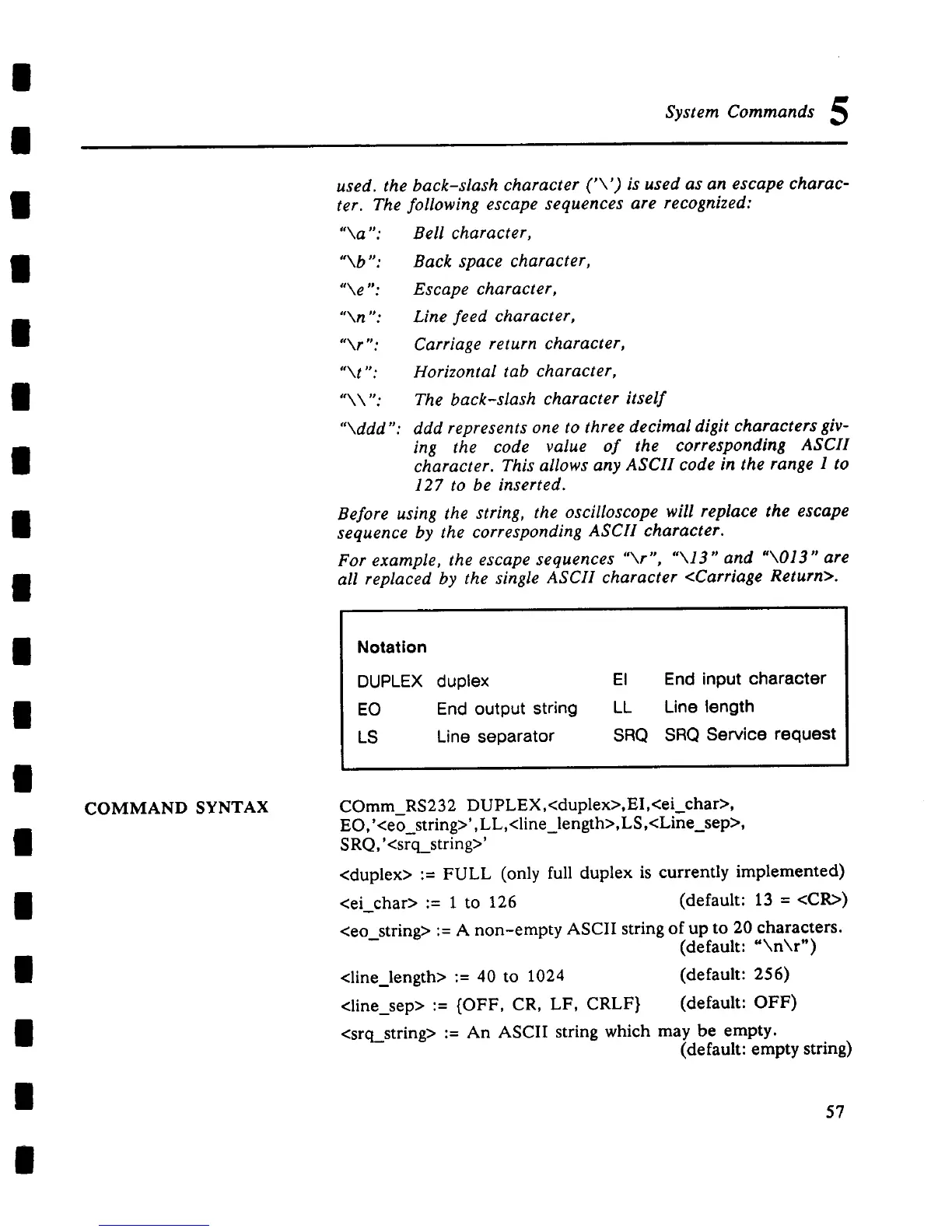 used. the back-slash character (’\’) is used as an escape charac-