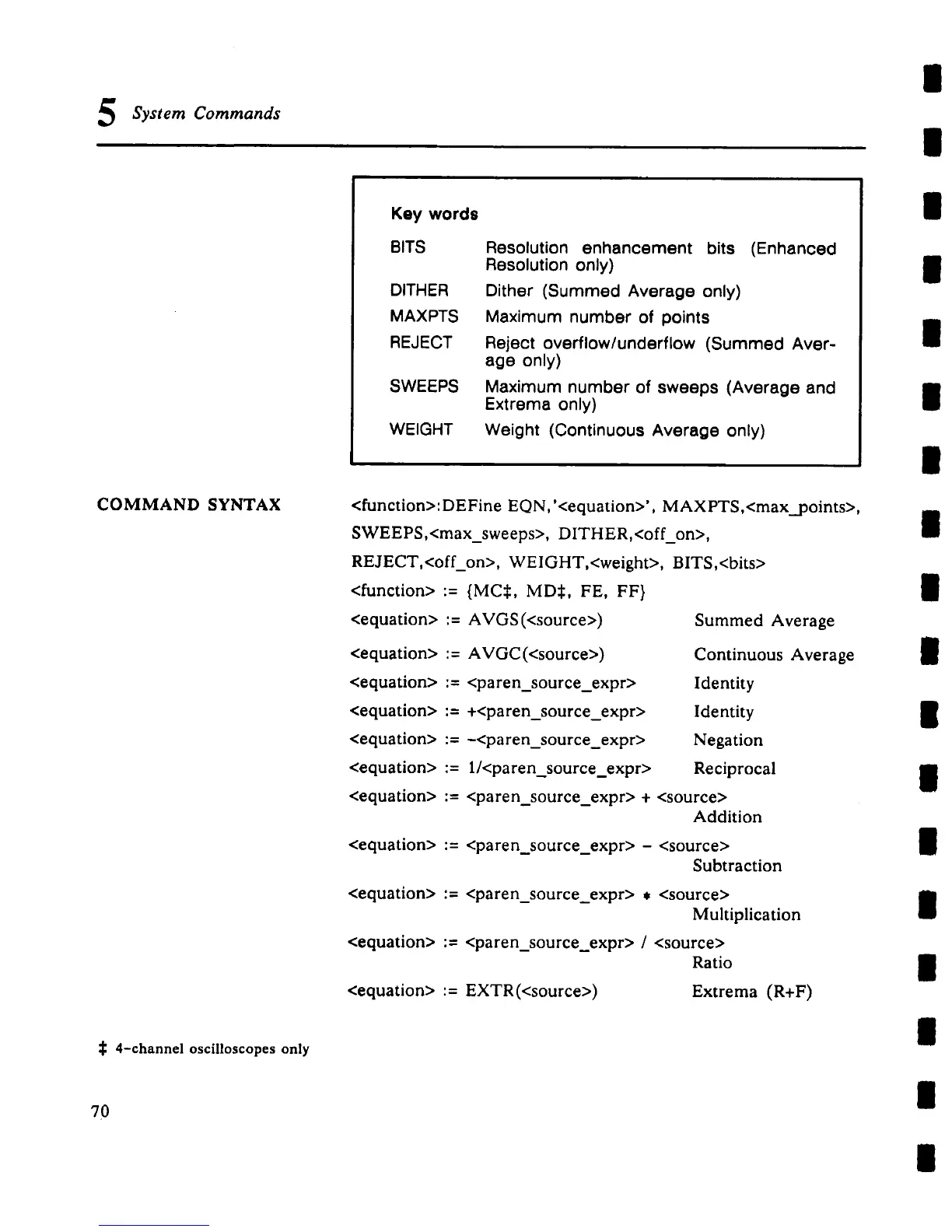 <function>:DEFine EQN,’<equation>’, MAXPTS,<max._points>,
