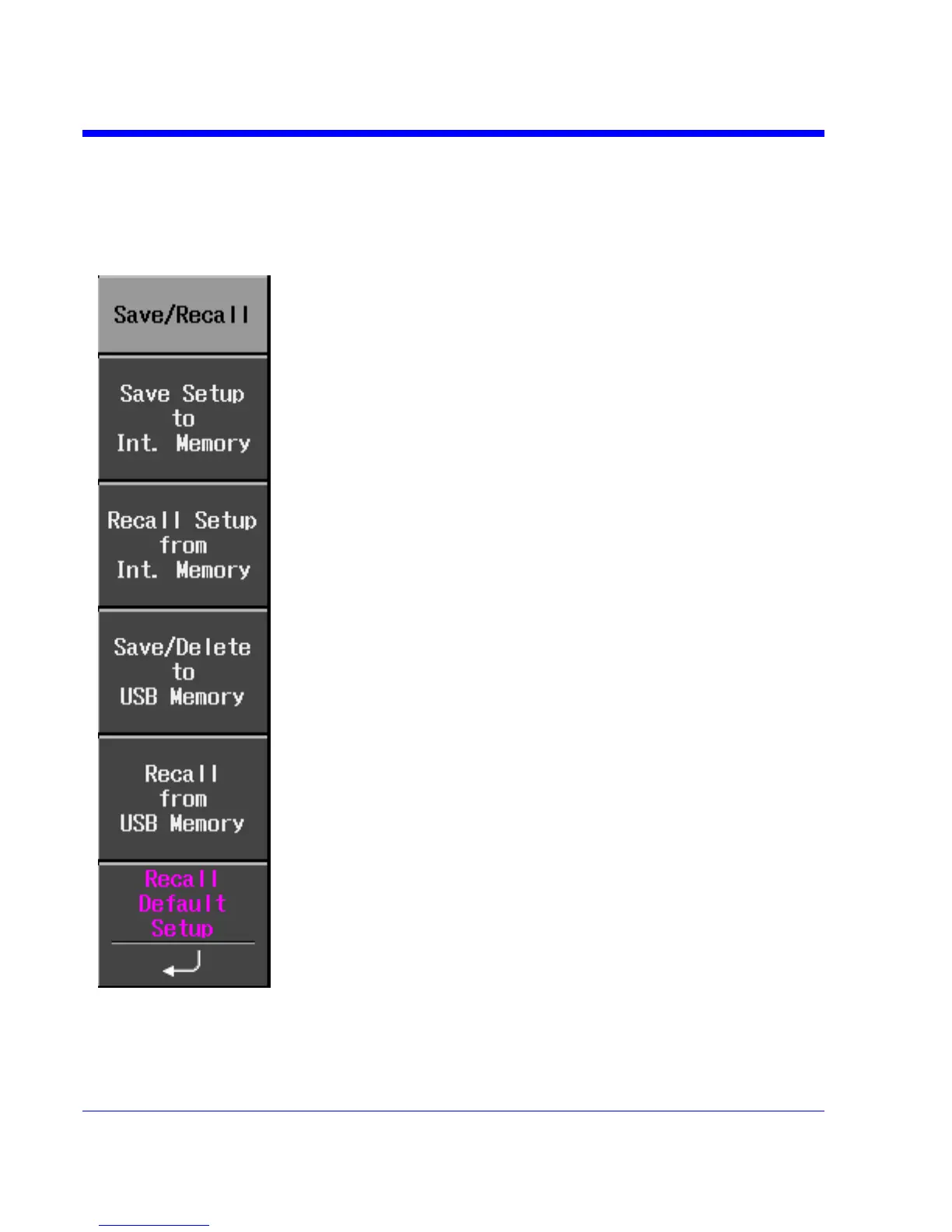 menu is accessed by pressing the SAVE/RECALL front panel button.