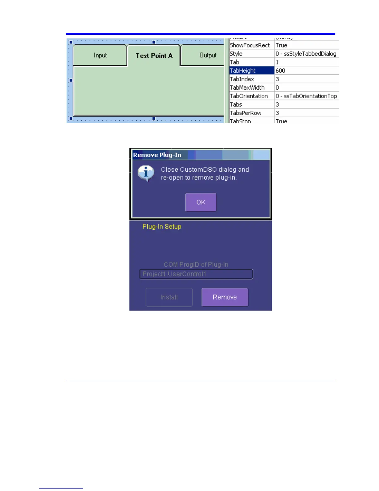 Close the CustomDSO dialog and reopen; the plug-in will vanish.