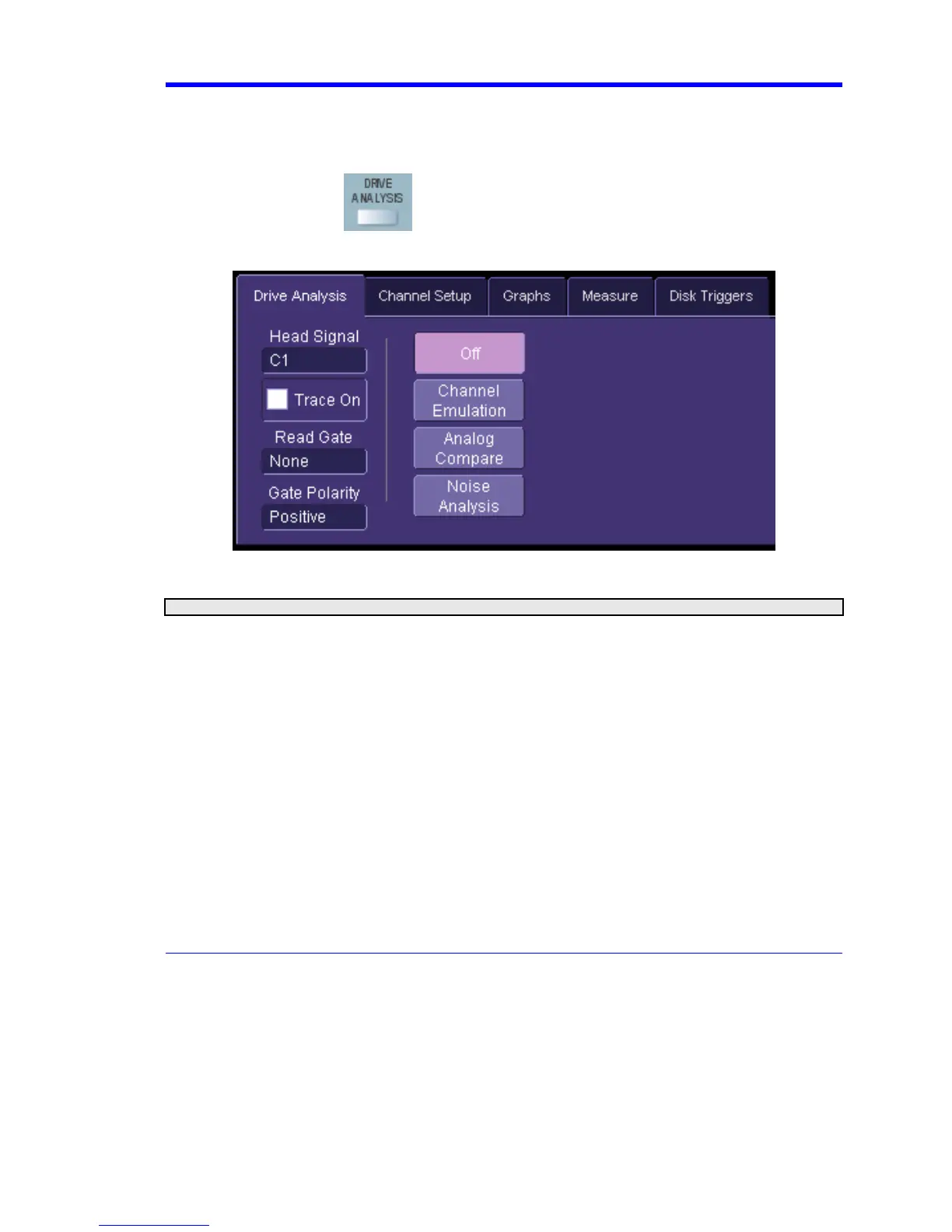 When you press the Drive Analysis button, you gain access to the Drive Analysis setup dialogs: