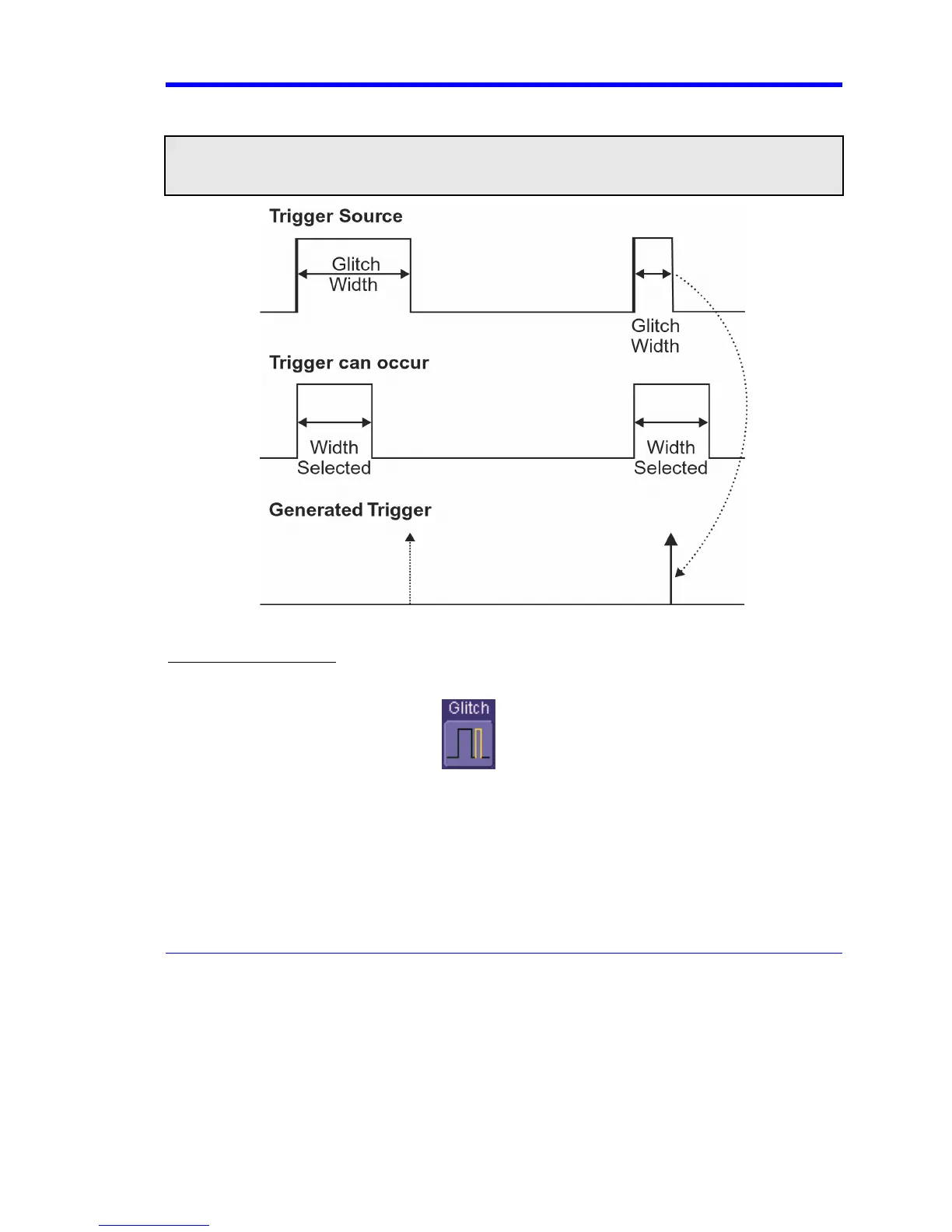 NOTE: If the glitch's width is narrower than the signal's width, set the trigger to a narrower width than that of the signal. The