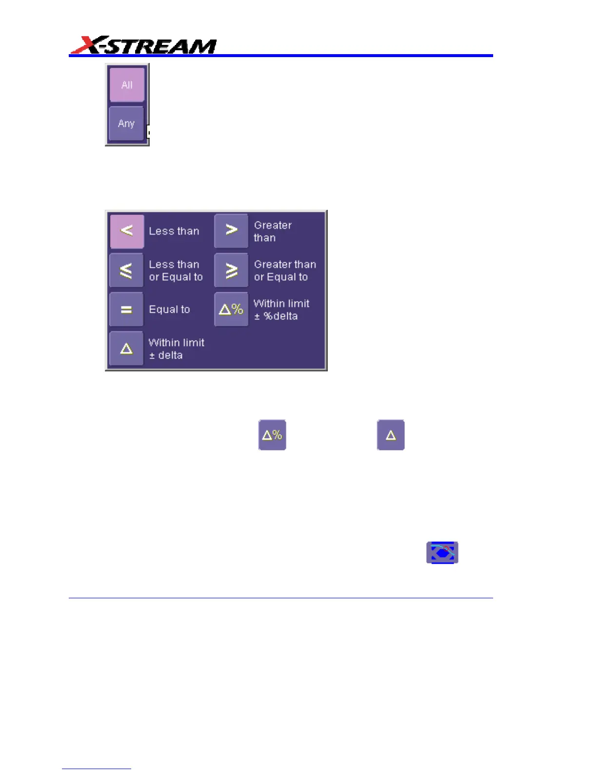 that you will set. By selecting Any, the test will be true if just one waveform falls within the