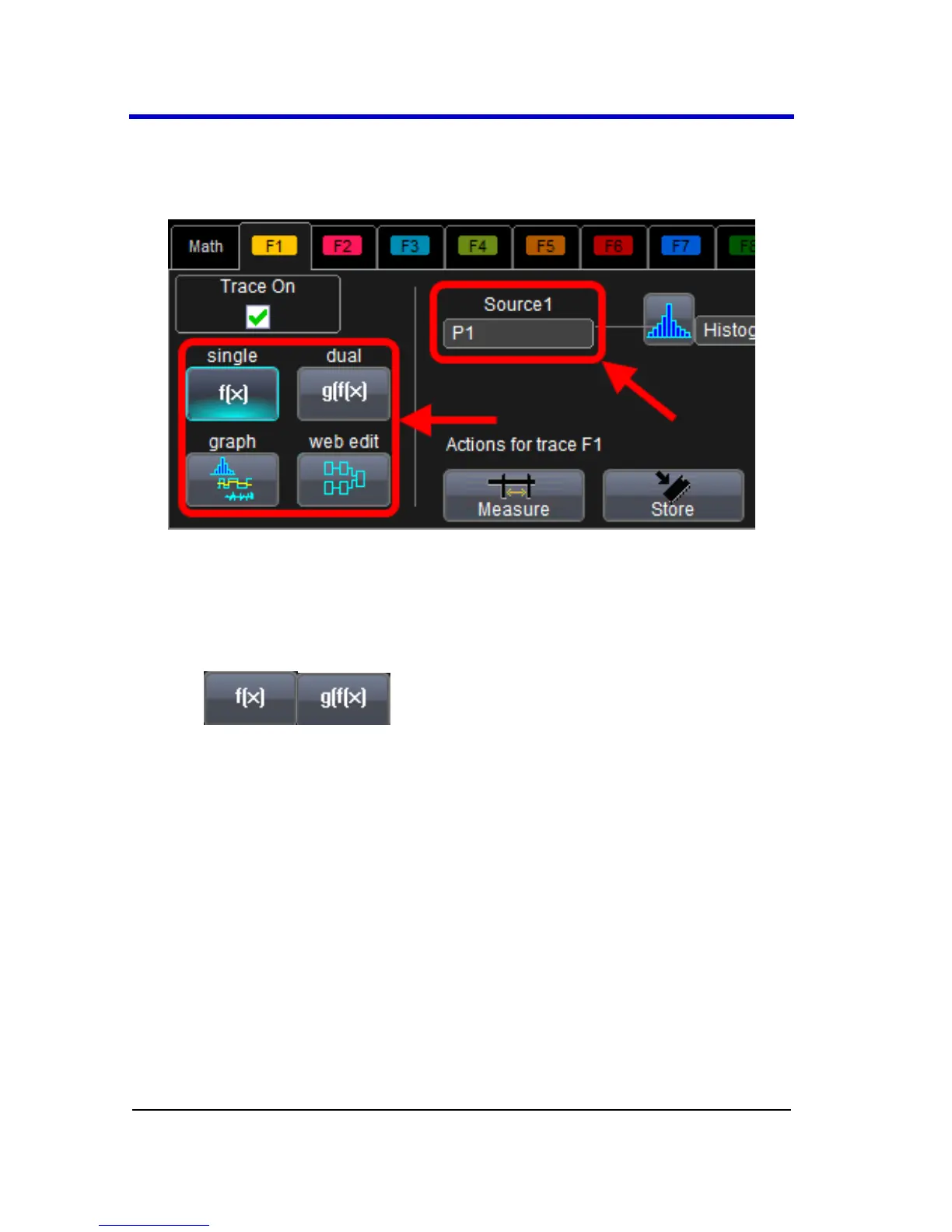 math function on the trace, or touch the Dual function button to