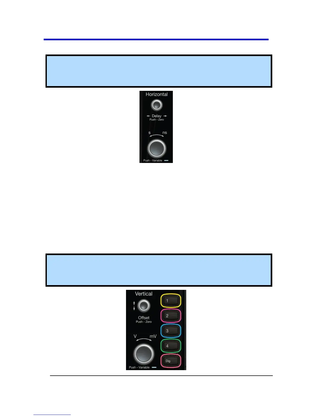 Note: Horizontal front panel controls can be applied to signals, Math,