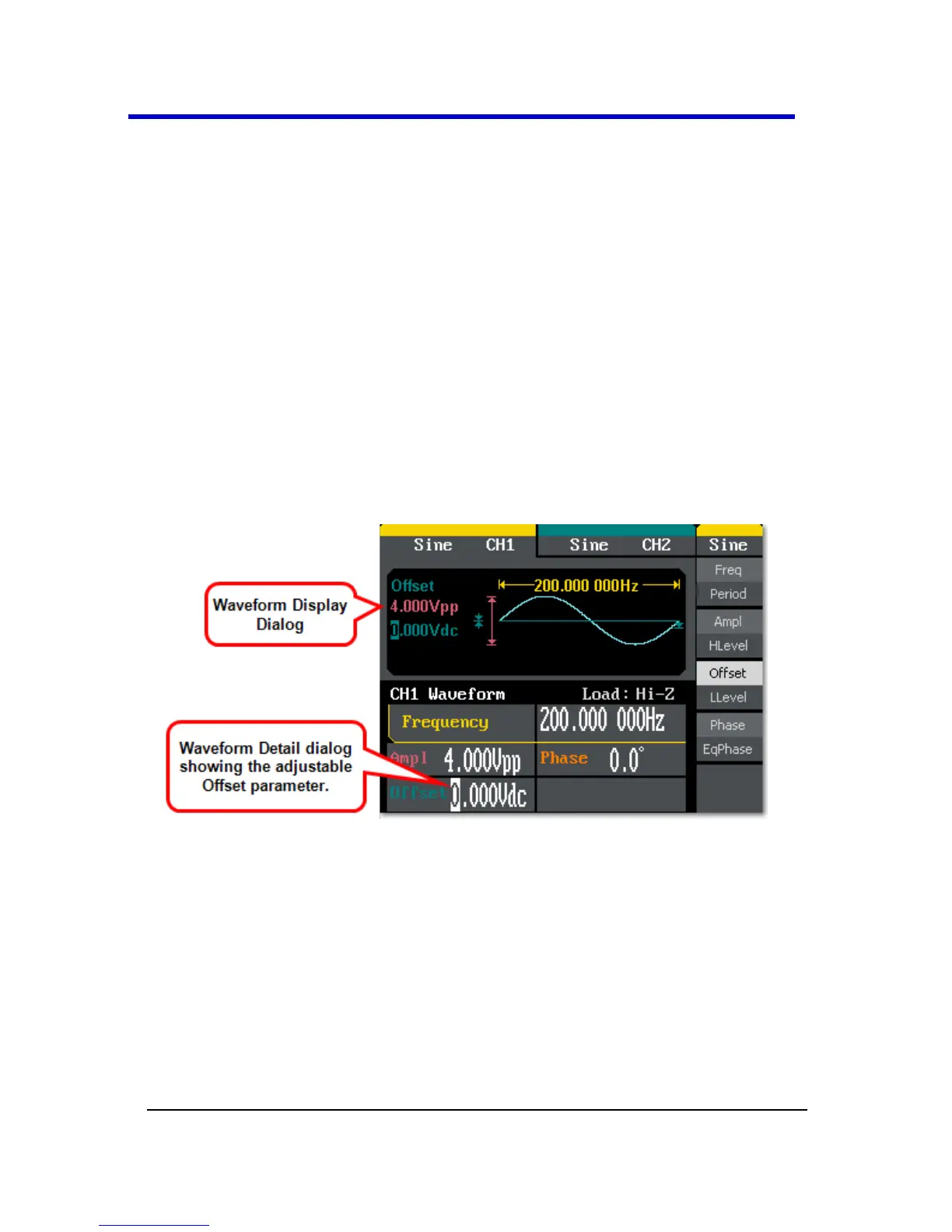 With the Sine waveform and the Offset/LLevel operation button pressed