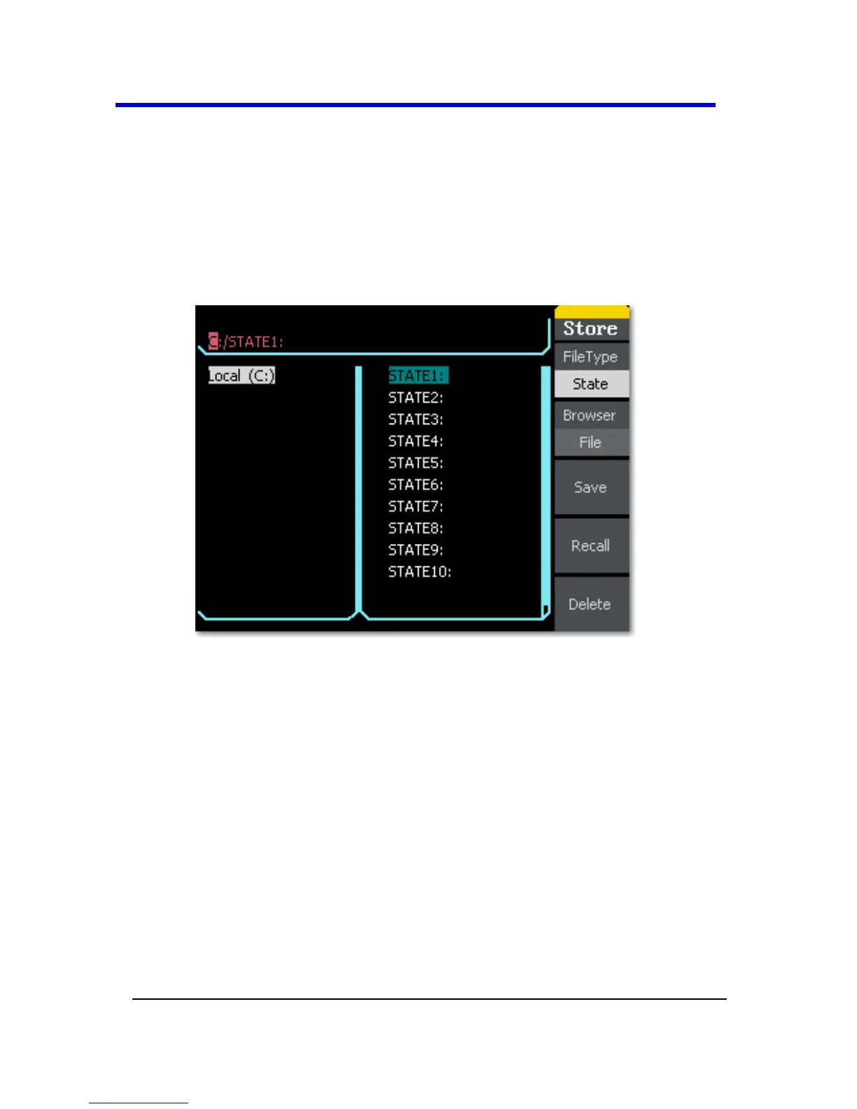 Save/Recall function button on the Front Panel (on page 13).