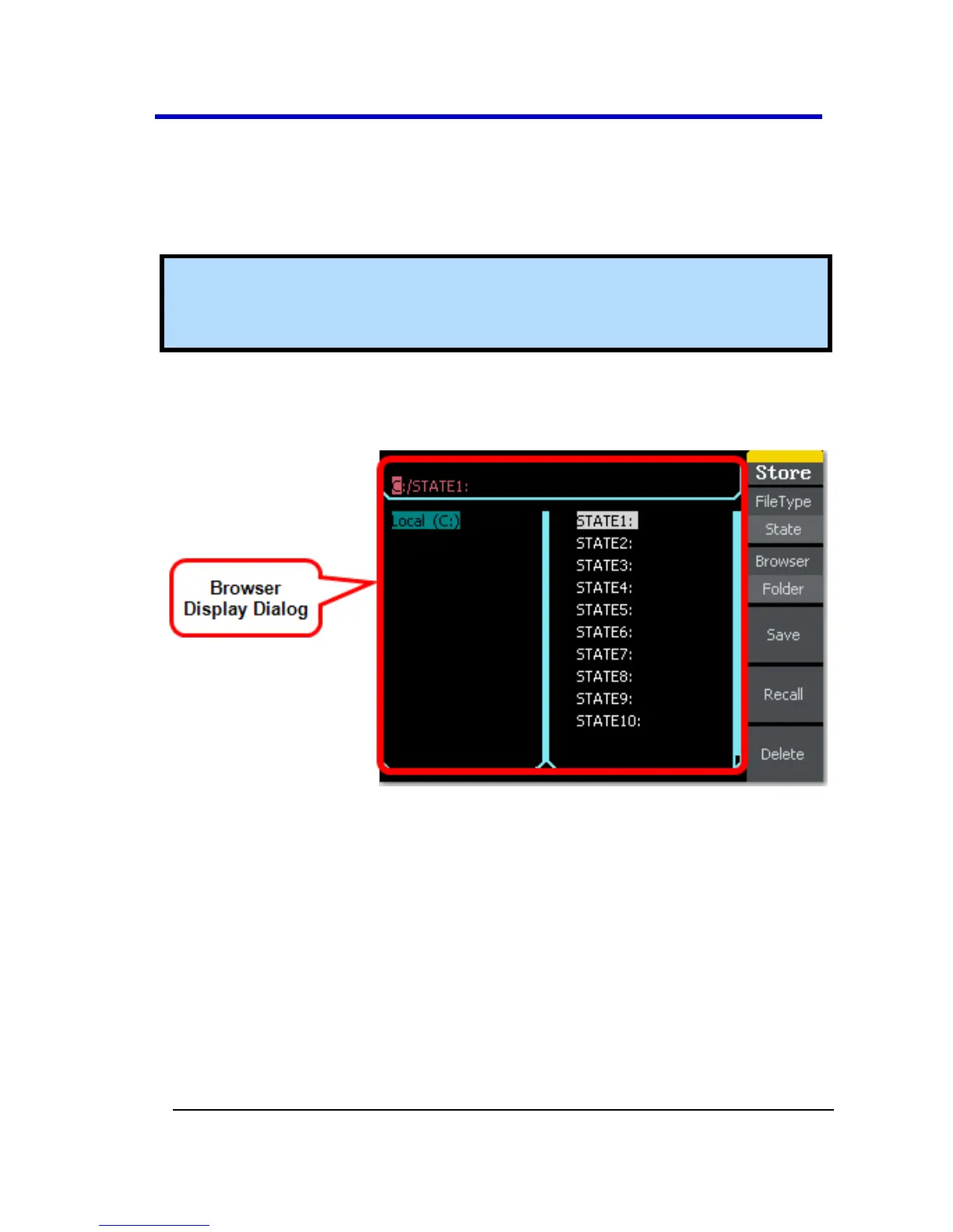 After pressing the Save/Recall button on the Front Panel (on page 13),