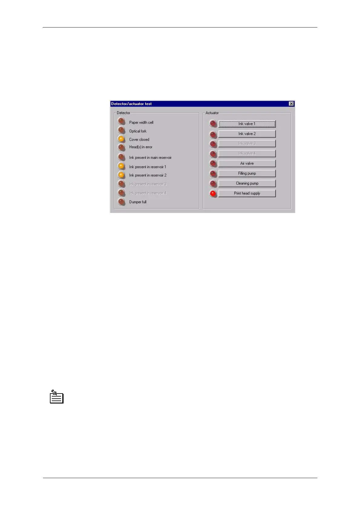 Click the “Test actuators/sensors” button in the “Advanced functions”