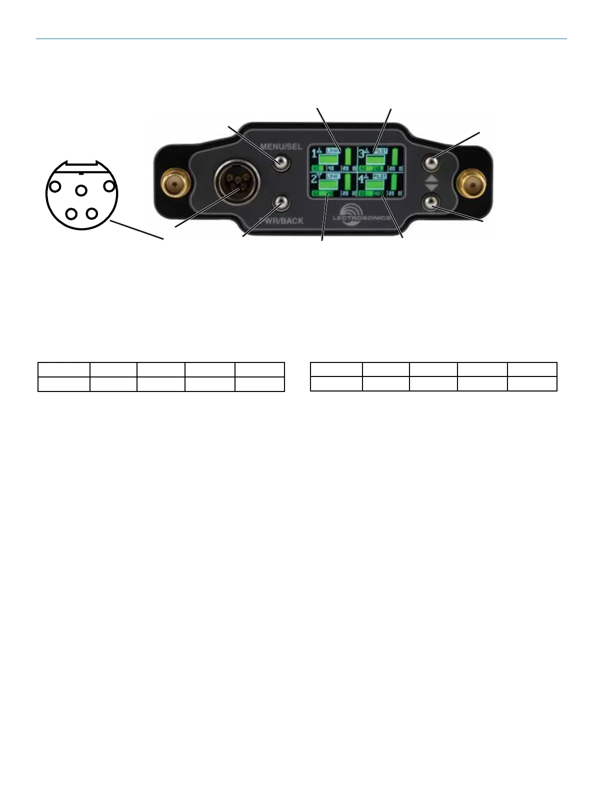 The front panel 5-pin connector (TA5 type) provides two balanced pairs with the following analog and AES3 pinouts: