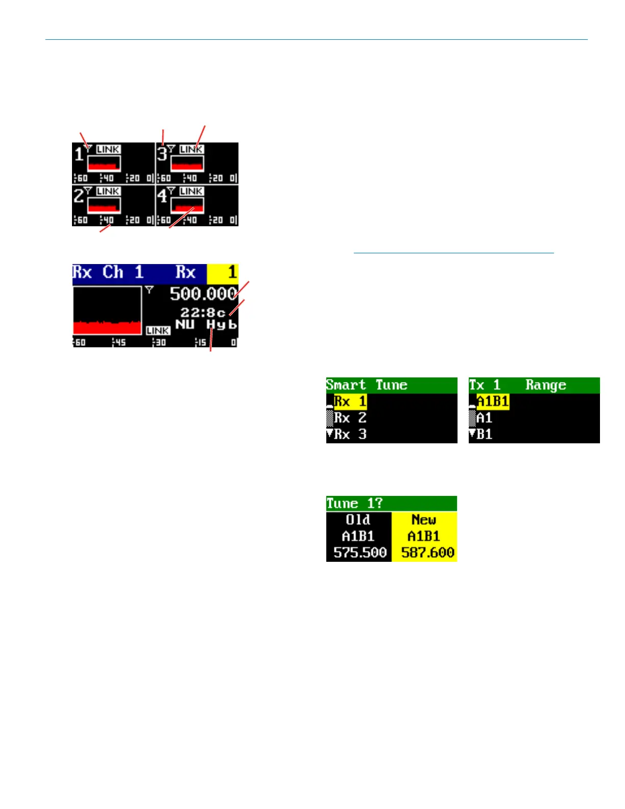 tion levels, the condition of the Pilot Tone (Hybrid) or Link