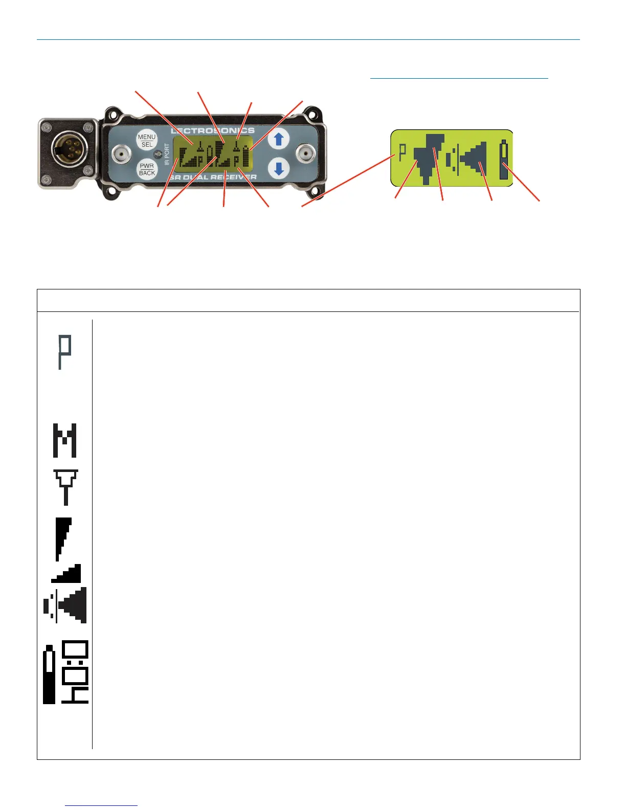 A steady “P” icon will be displayed when a pilot tone from the transmitter is present. The “P” will ap-