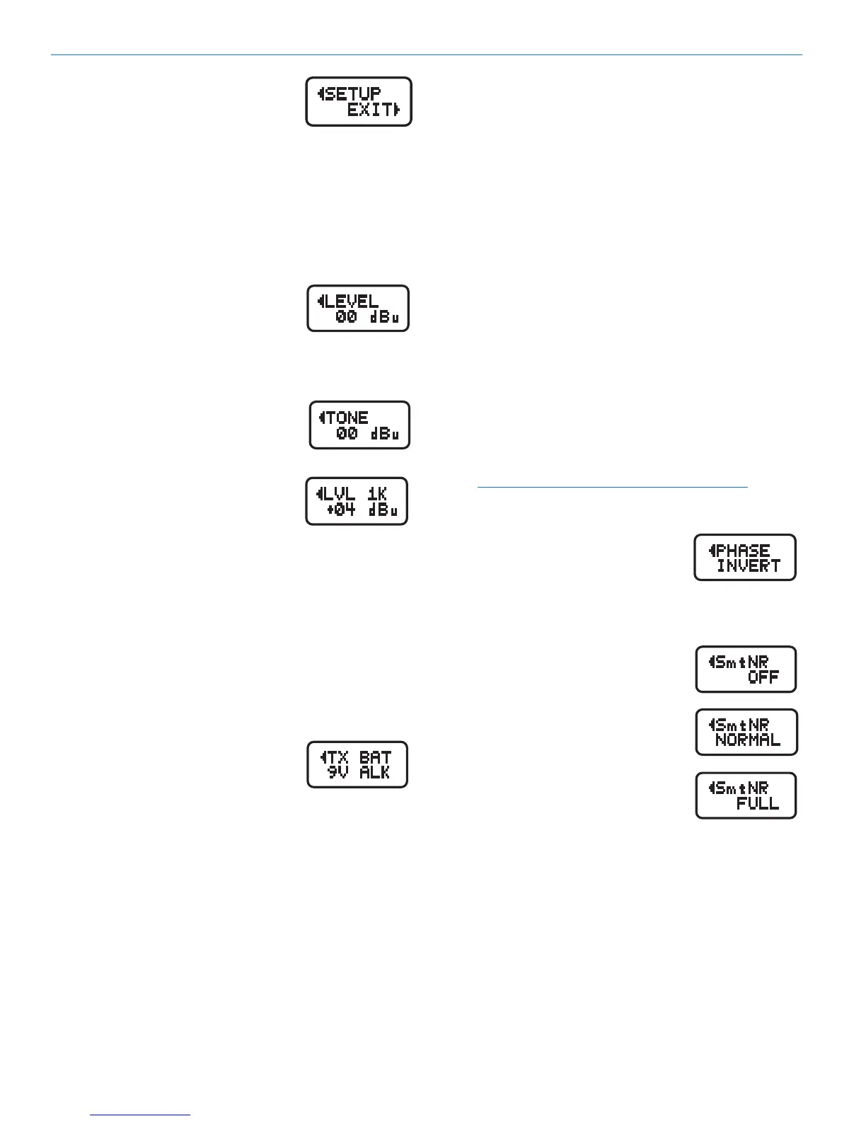 from -50 to +5 dBu in 1 dB steps. Press the MENU but-