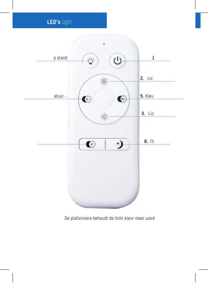 De plafonniere behoudt de licht kleur maar wordt minder fel
