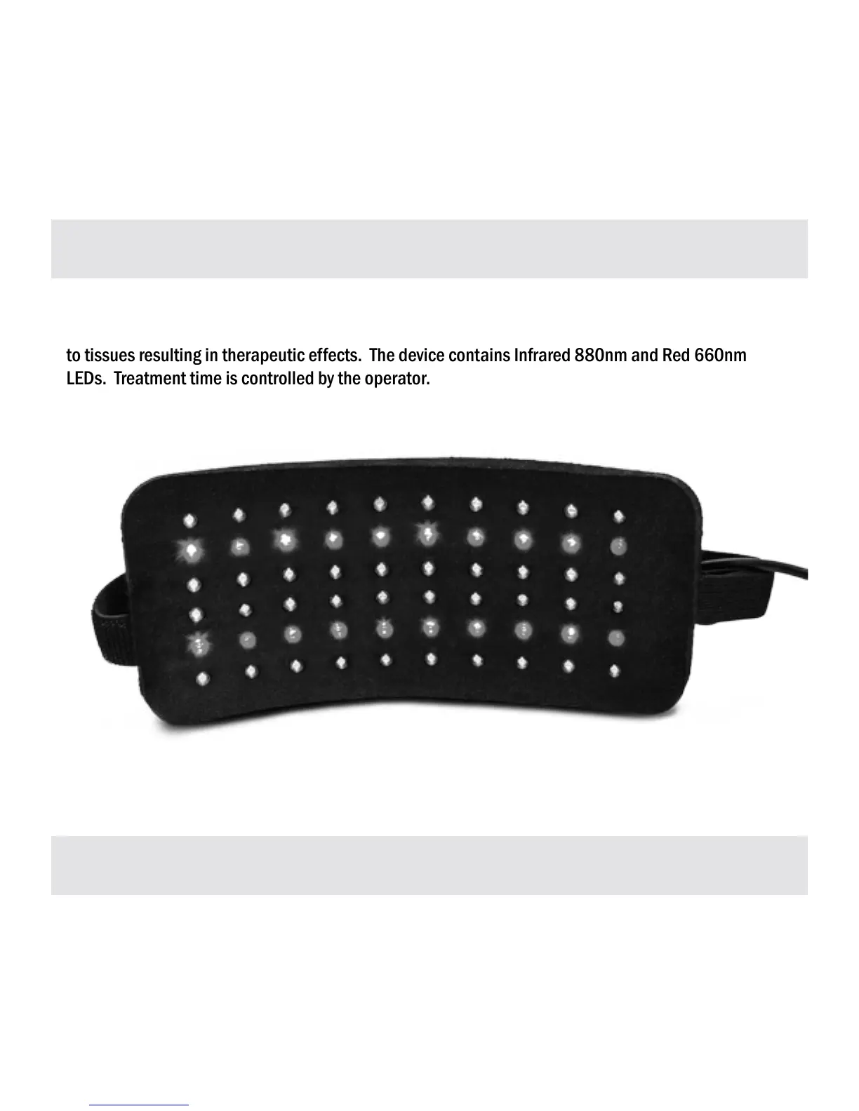to tissues resulting in therapeutic effects. The device contains Infrared 880nm and Red 660nm