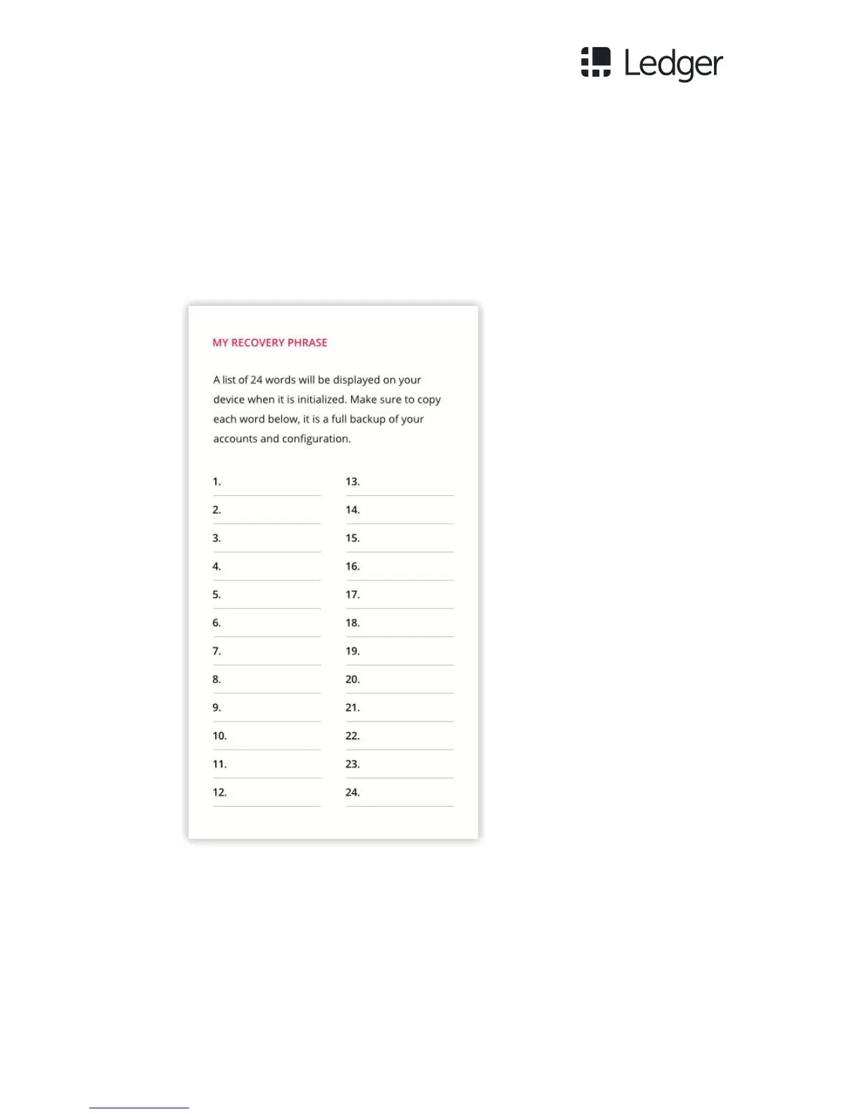 The 24 words will now be displayed one by one on the Ledger Nano S screen. Be