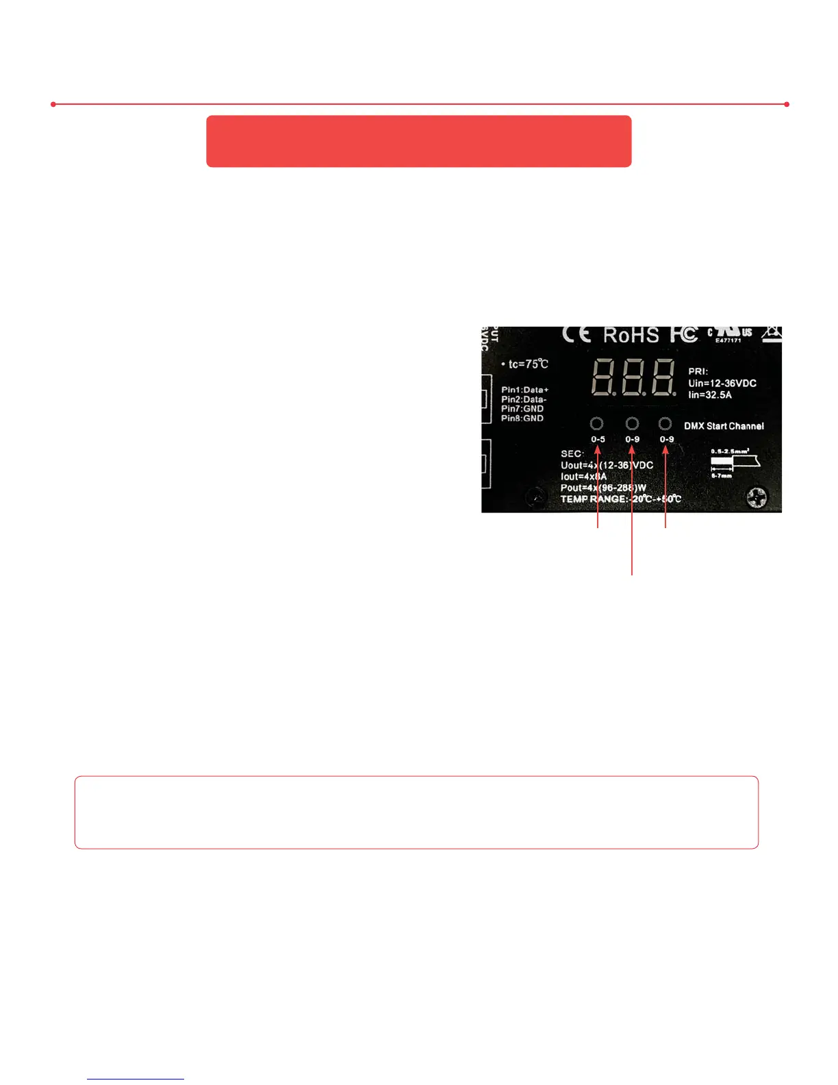 The RGB DMX Decoder transfers data via the standard DMX512 protocol. There are 512