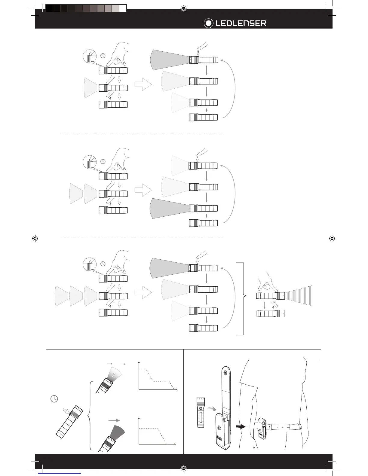 ledlenser MT10 - Operating Modes; Mode 1 Operation; Mode 2 Operation; Mode 3 Operation