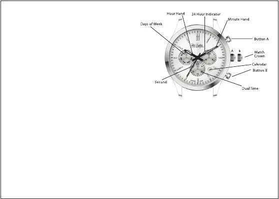 *The dual time hand can be put rapidly by continuously pressing button "A" or "B"