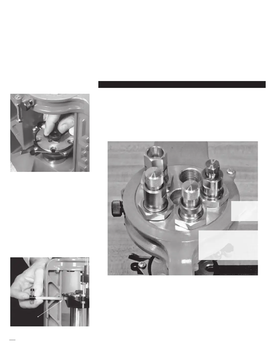 • Carbide pistol dies should be installed so they just touch the shell plate.