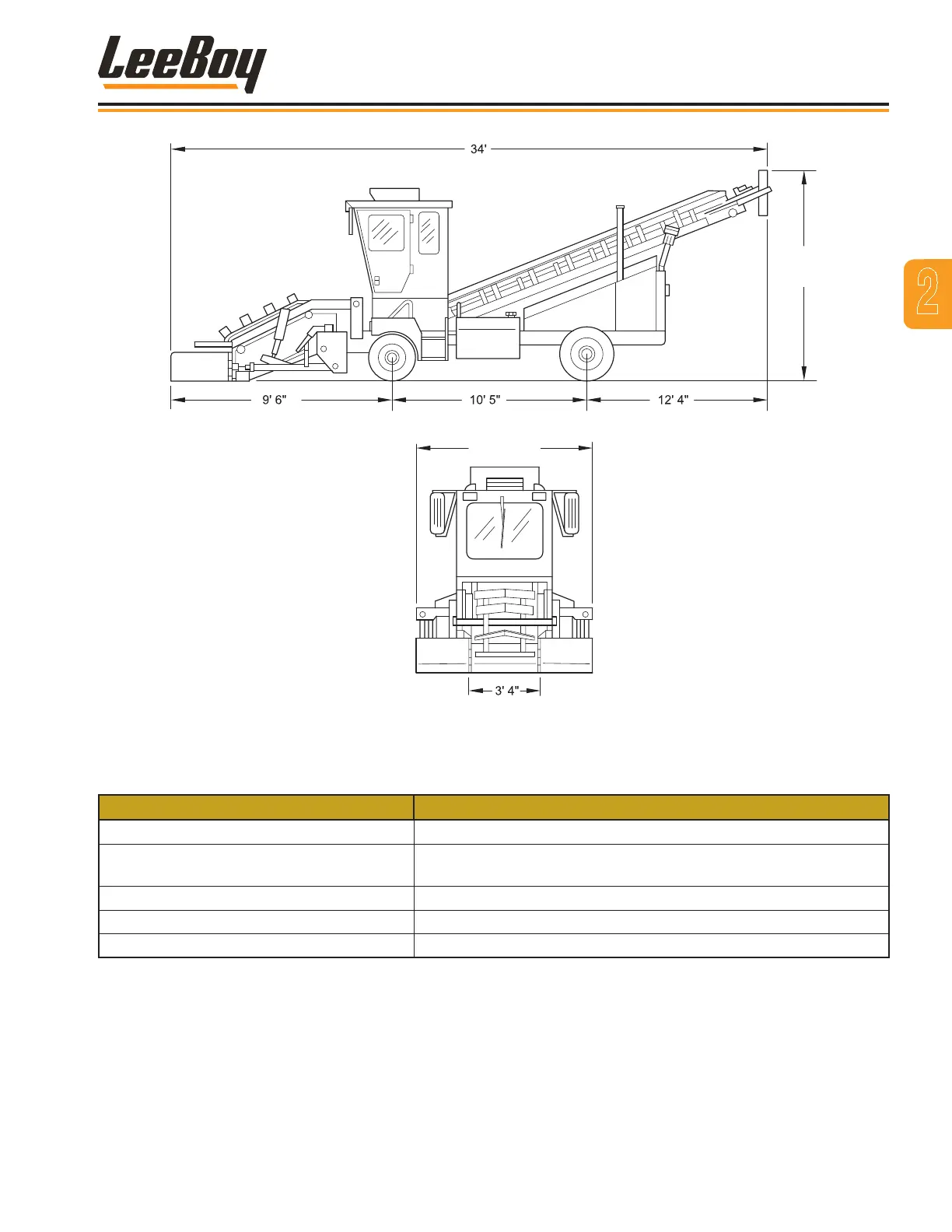 Width (Cab) 4’ 4.5” (130 cm)