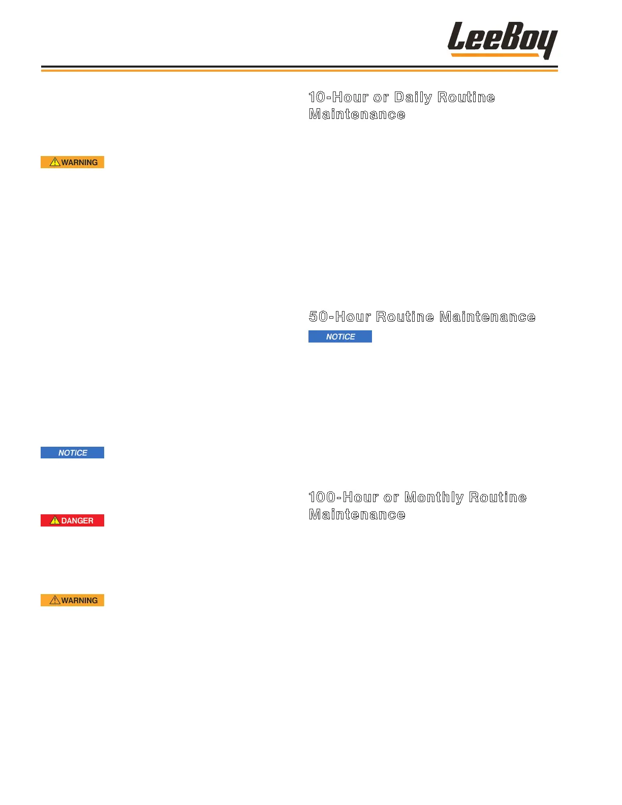 maintenance schedule begins with 10-hour, or daily,
