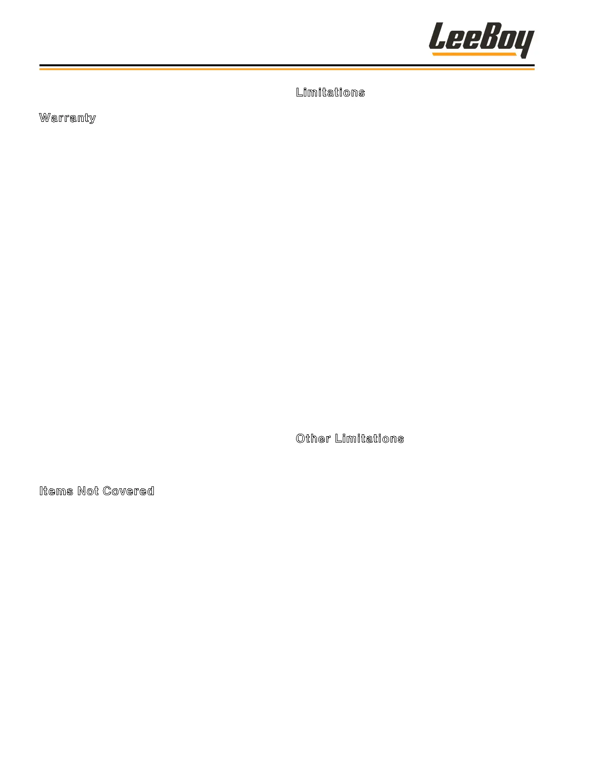LeeBoy Dealer is to be notied during the warranty period.