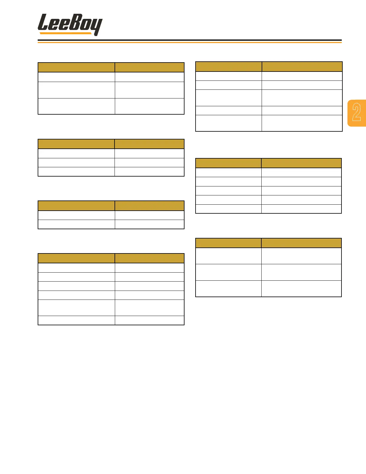 Table 2-5. Hydraulic Specications