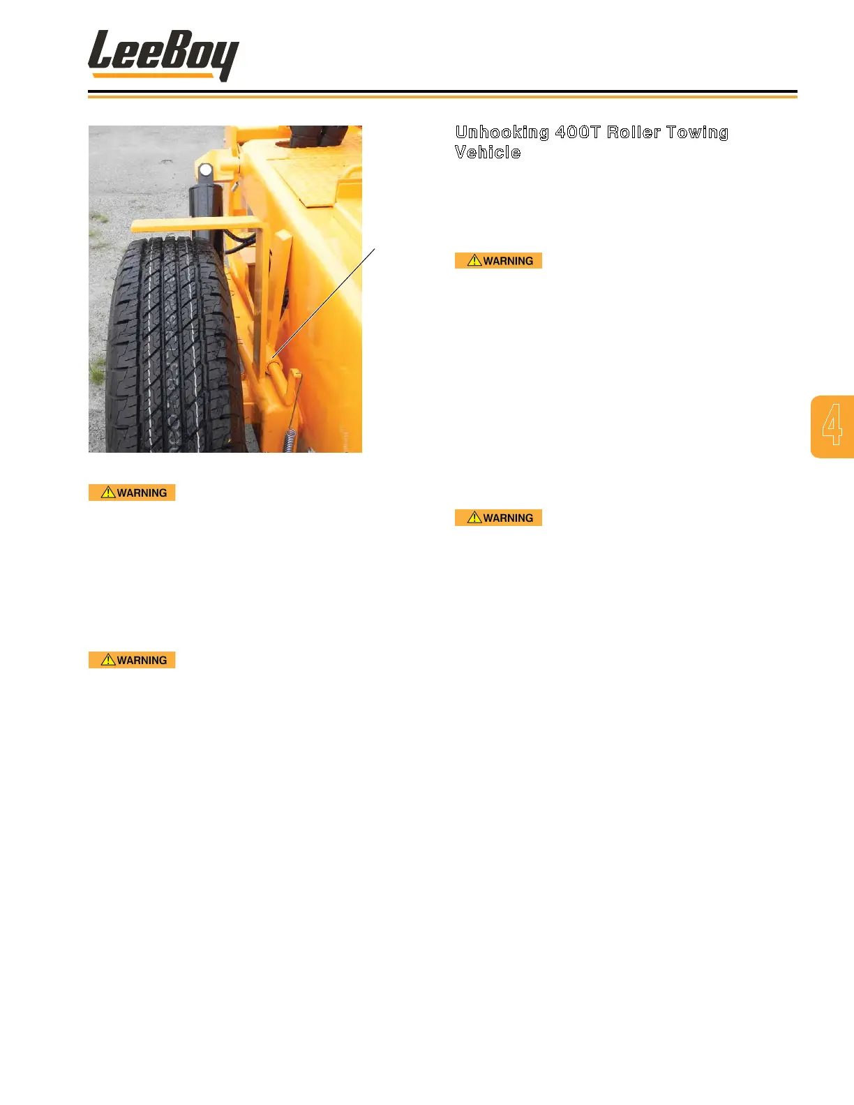 To unhook the 400T Roller from the towing vehicle: