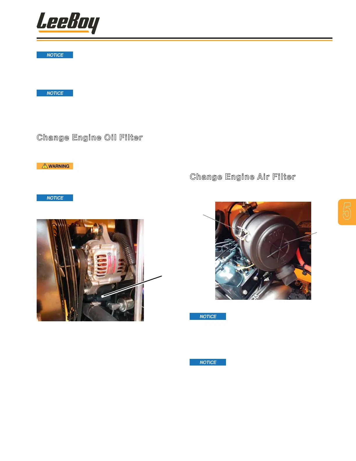 changing the engine lubrication oil lter. Follow the