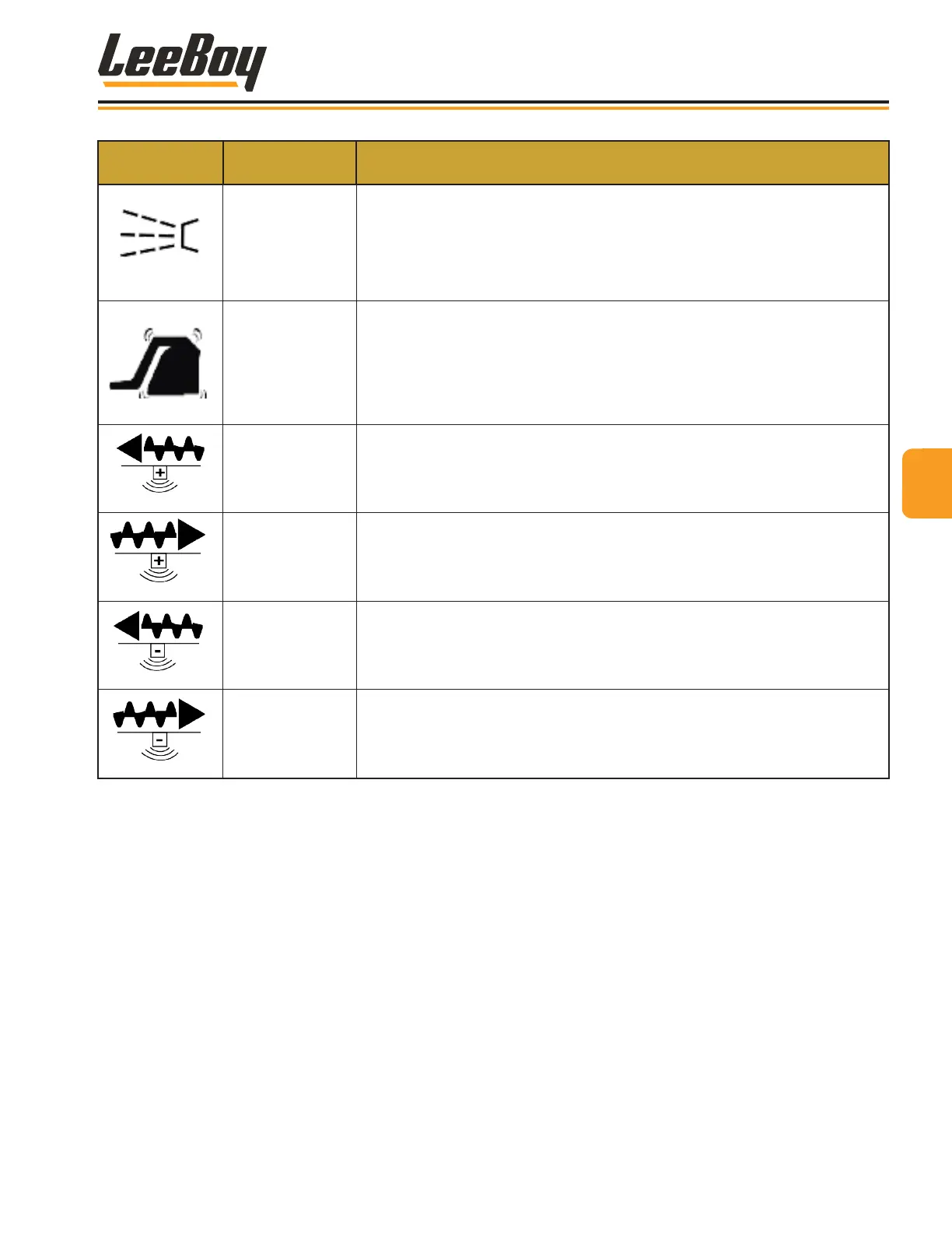 • Use this button to decrease pile height on the RIGHT side when auger is