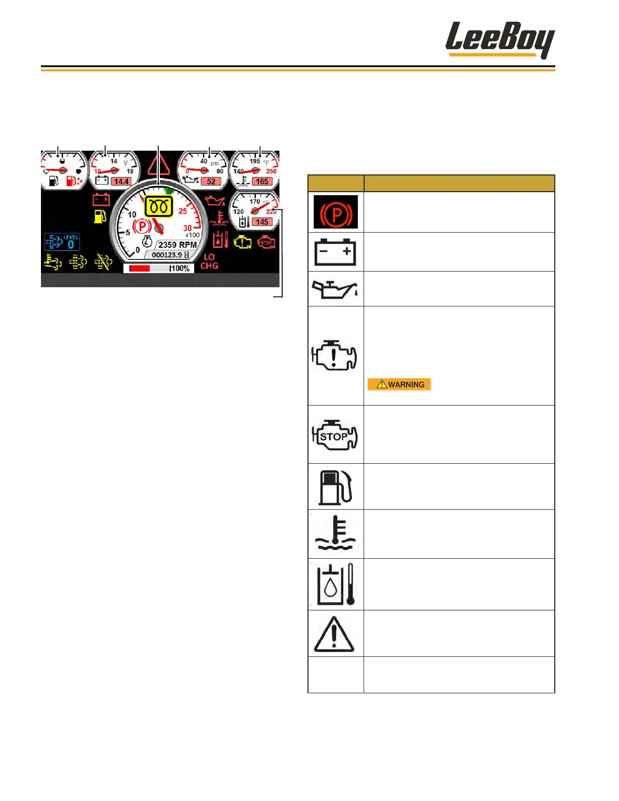 Warning symbols may also illuminate or turn red on