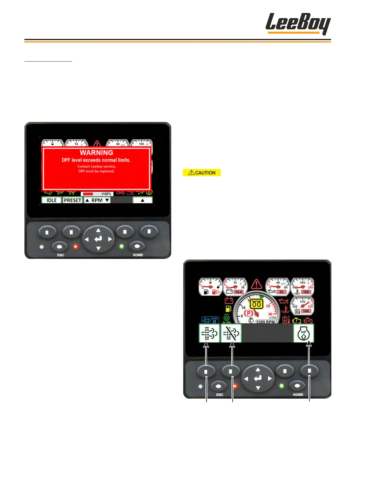 and pave screens notifying operator the DPF must be