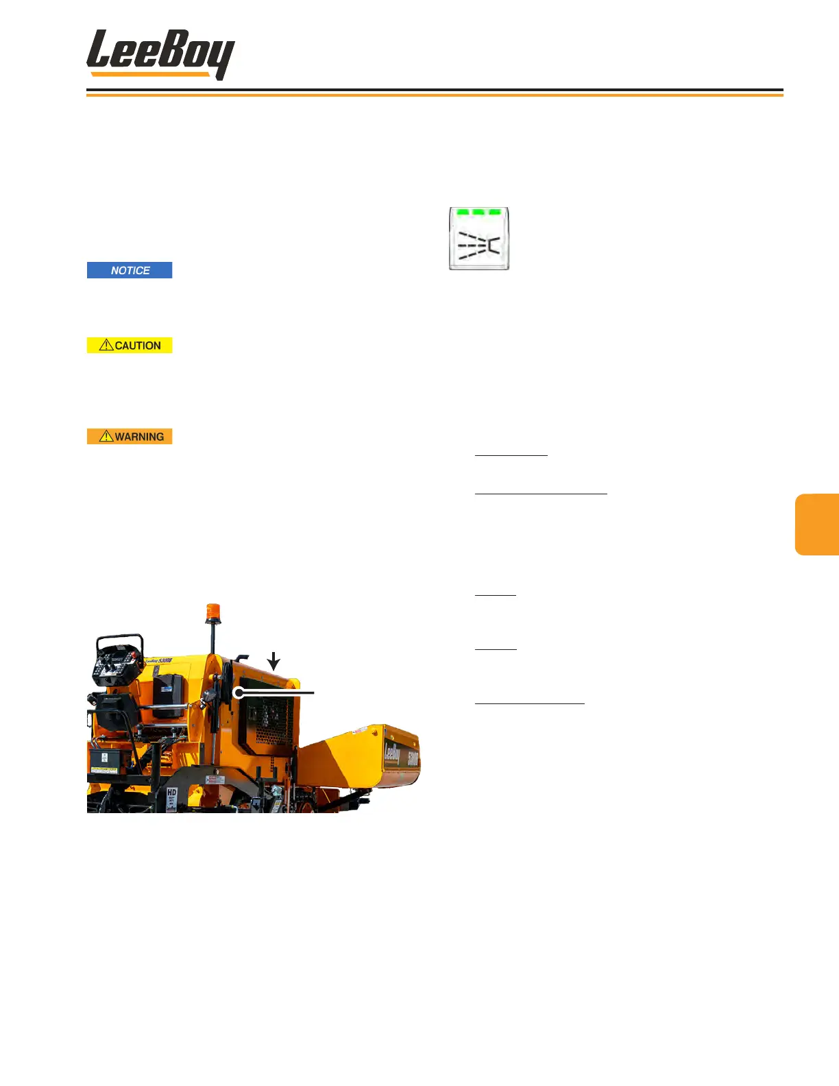 right side of the paver. Open the engine cover to