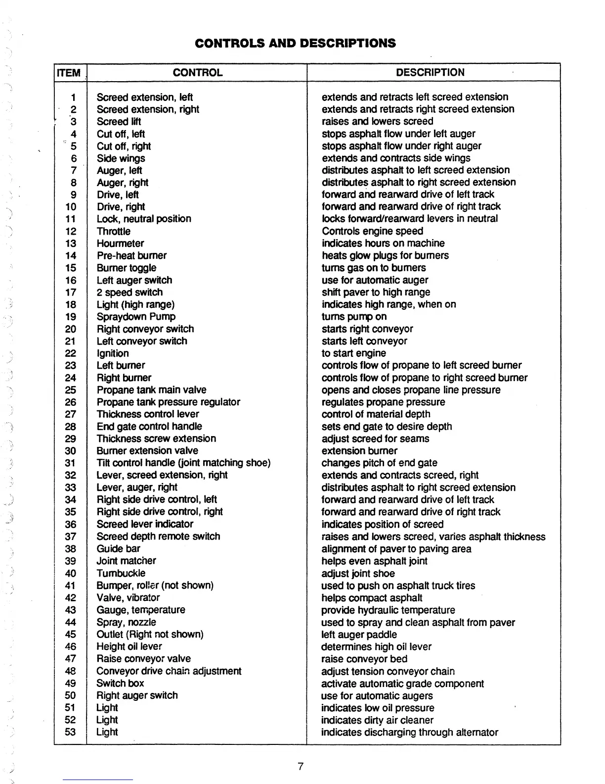 CONTROLS AND DESCRIPTIONS