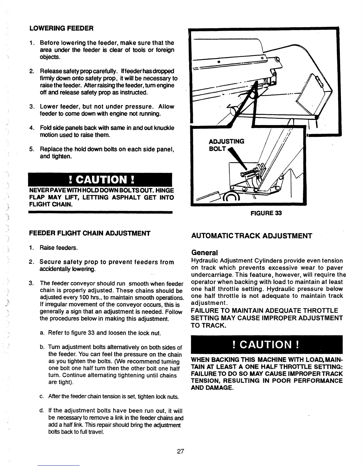 FEEDER FLIGHT CHAIN ADJUSTMENT