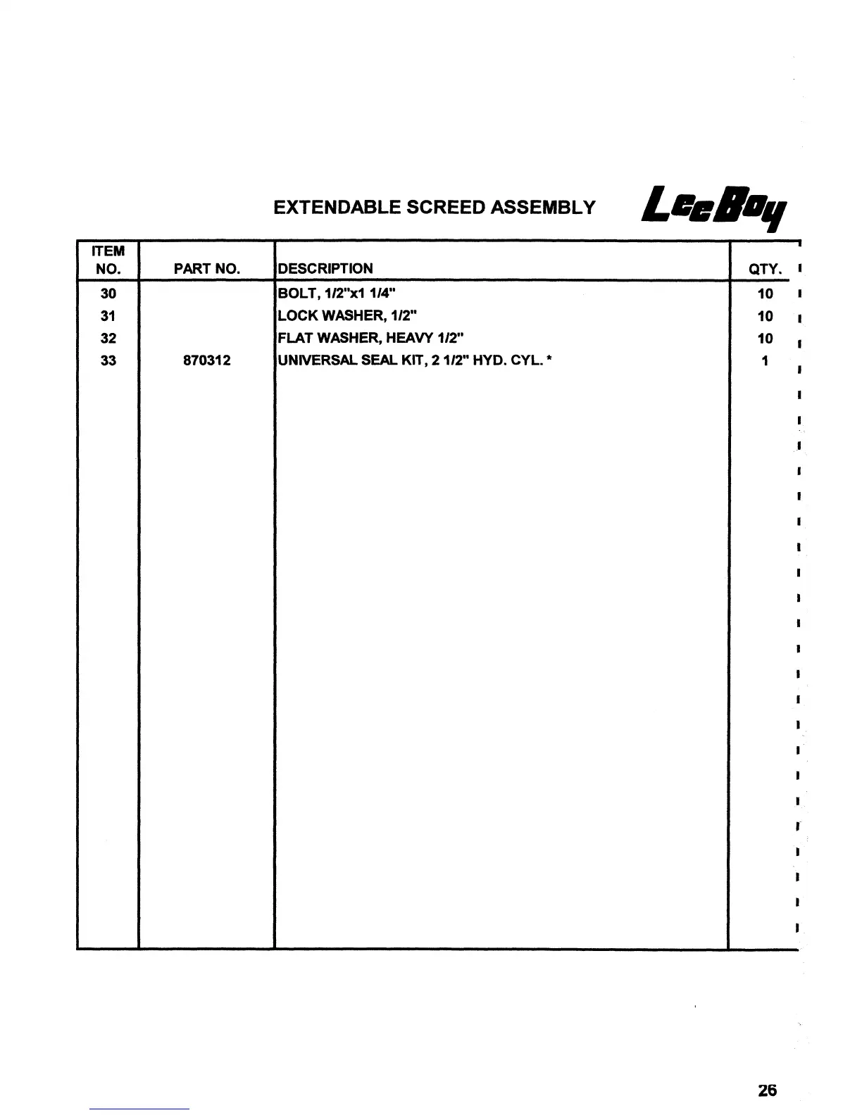 LeeBoy 7000 - Extendable Screed Assembly