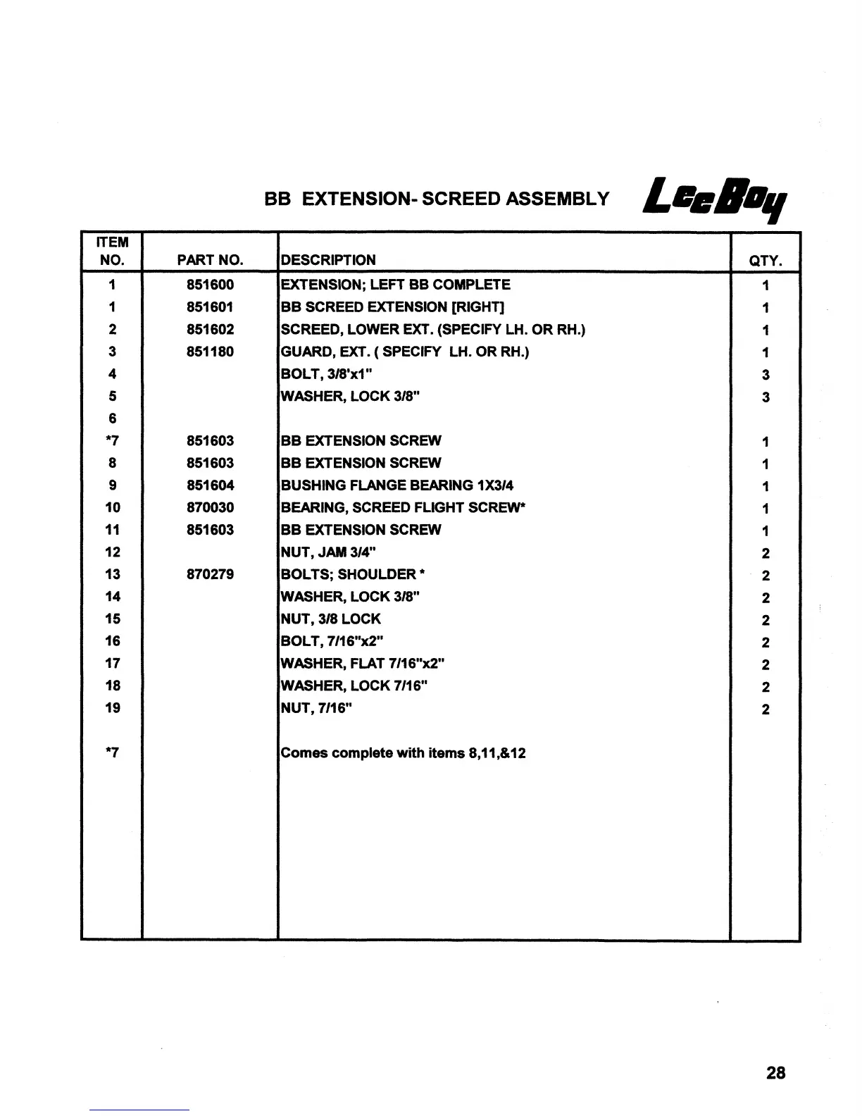 LeeBoy 7000 - BB EXTENSION-SCREED ASSEMBLY