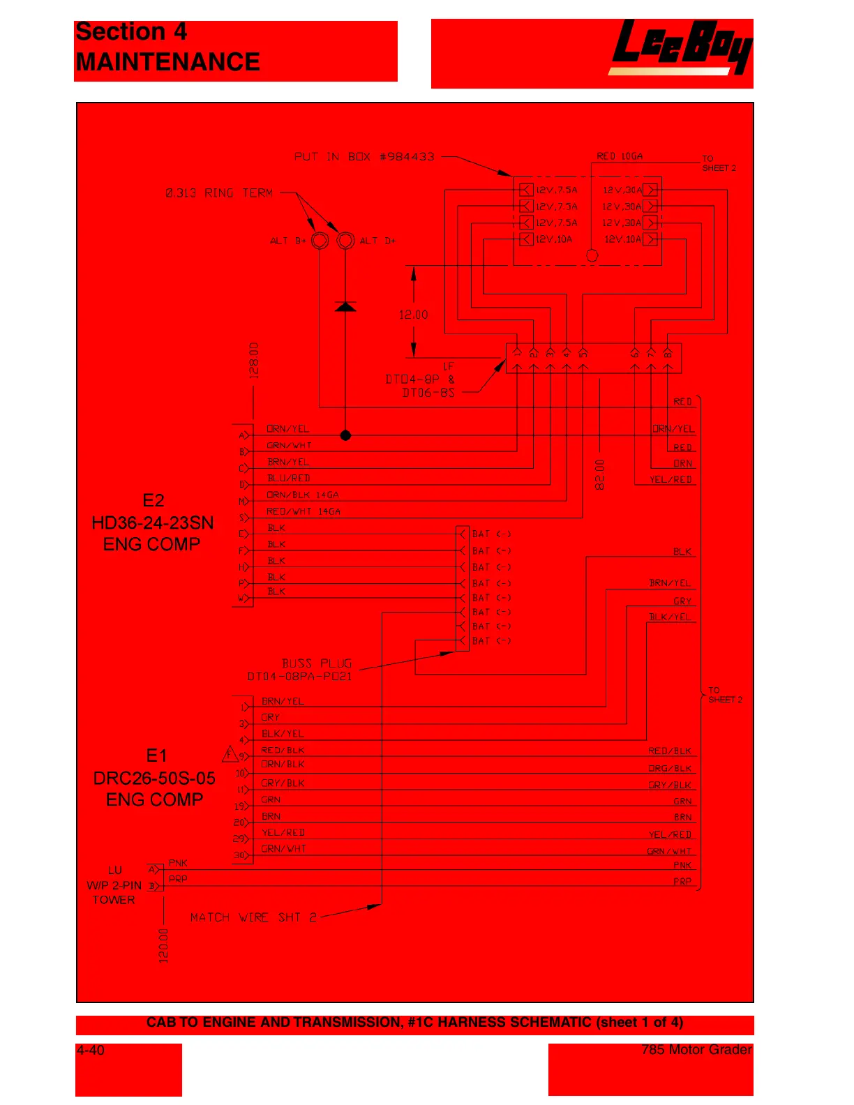 CAB TO ENGINE AND TRANSMISSION, #1C HARNESS SCHEMATIC (sheet 1 of 4)