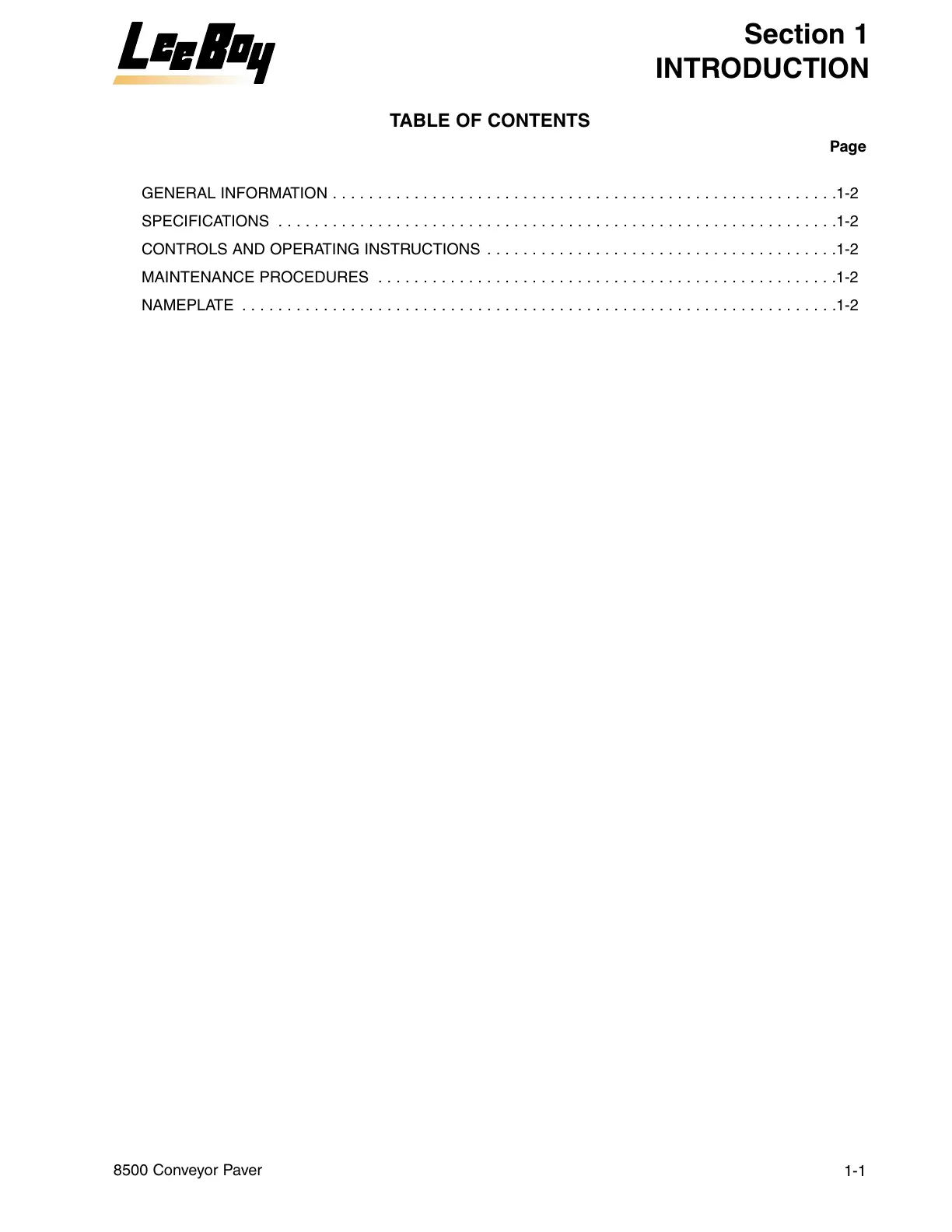 NAMEPLATE . . . . . . . . . . . . . . . . . . . . . . . . . . . . . . . . . . . . . . . . . . . . . . . . . . . . . . . . . . . . . . . . . .1-2