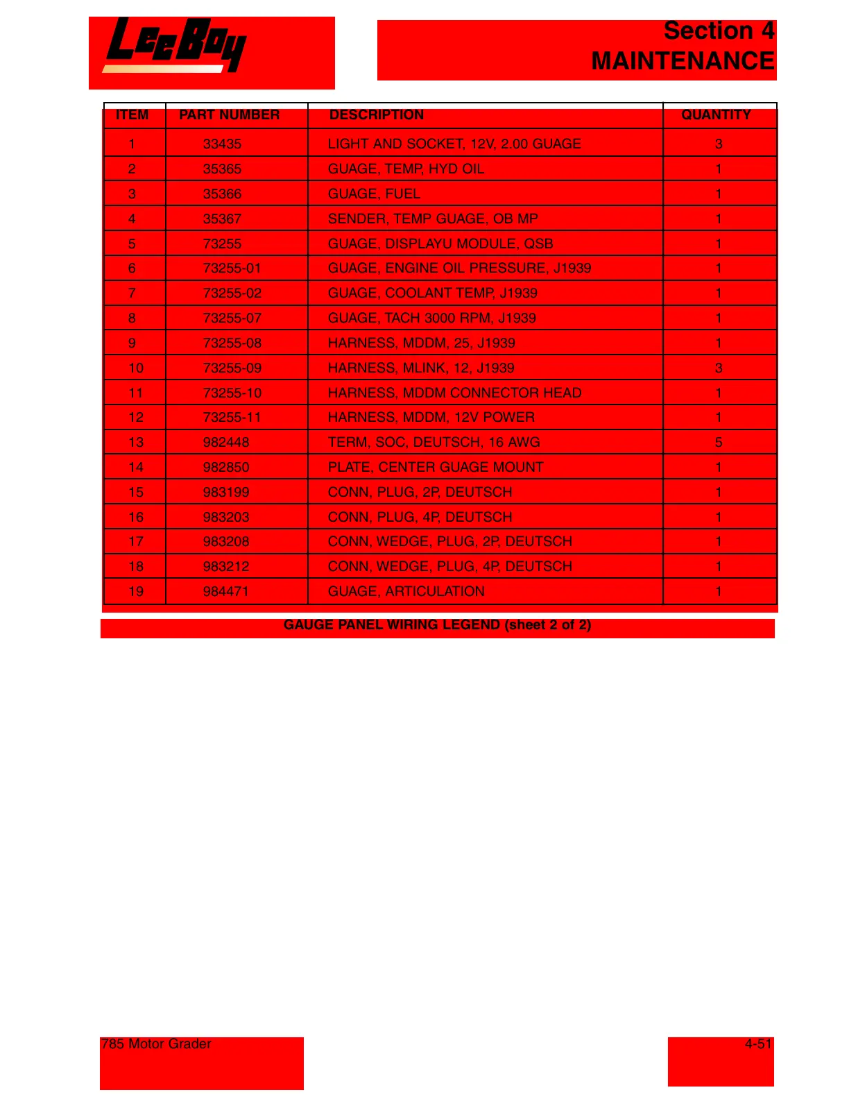 GAUGE PANEL WIRING LEGEND (sheet 2 of 2)