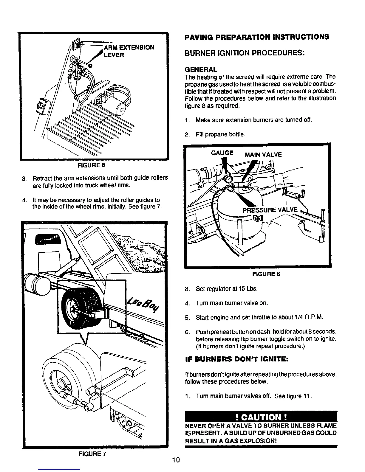LeeBoy 8500 - Paving Preparation Instructions; Burner Ignition Procedures; If Burners Dont Ignite