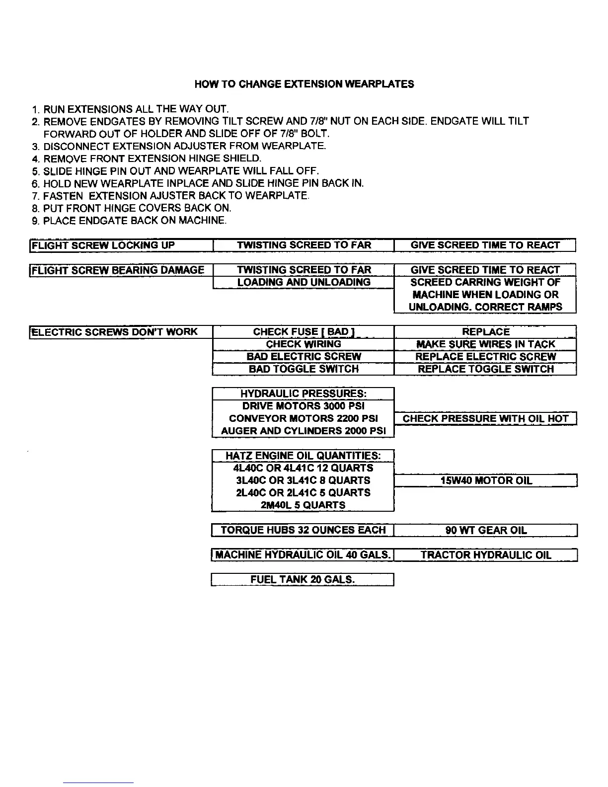 LeeBoy 8500 - Screed Service and Information; Screed Straightness and Heat; Screed Ripples and Extension Settings