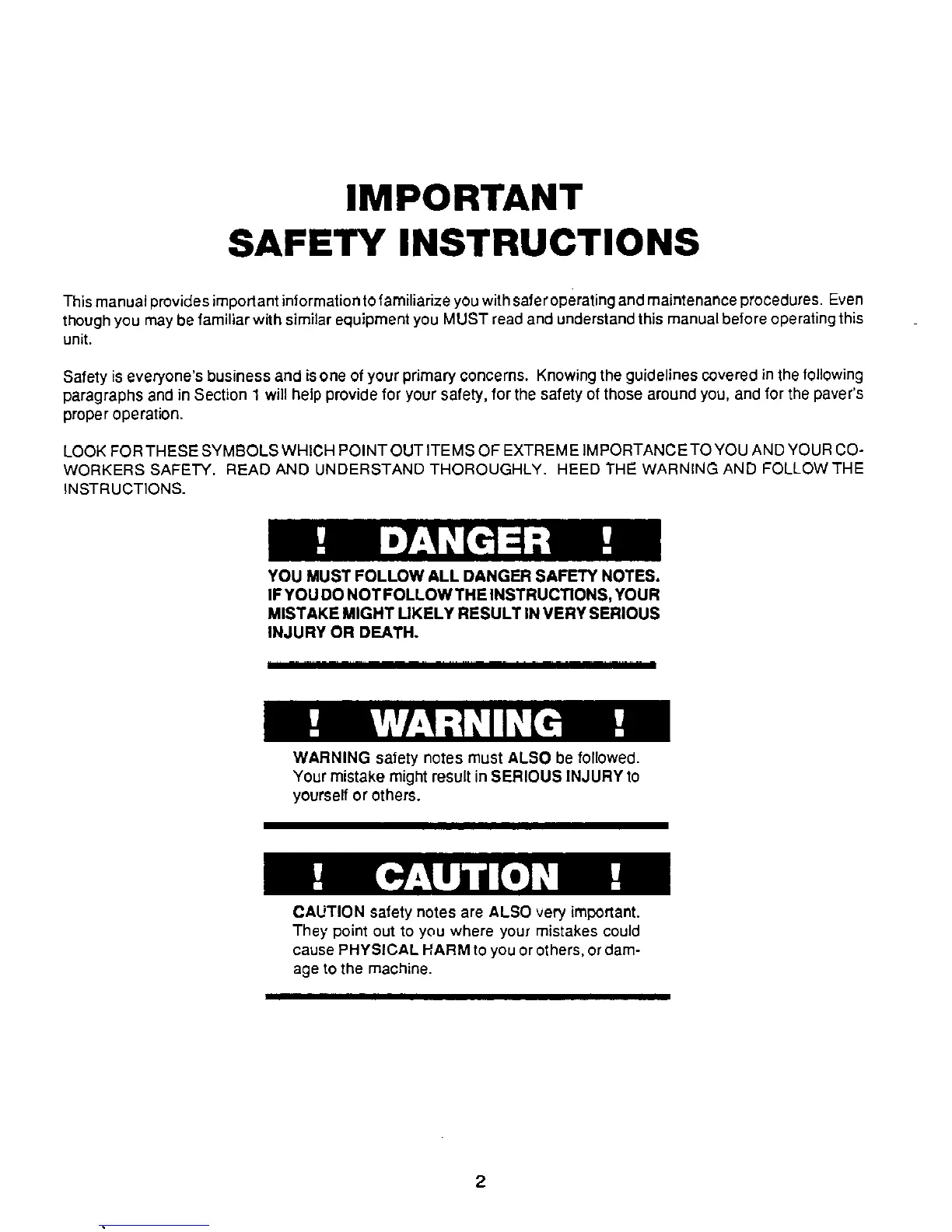 LeeBoy 8500 - Safety Instructions; General Safety Guidelines; Hazard Level Indicators