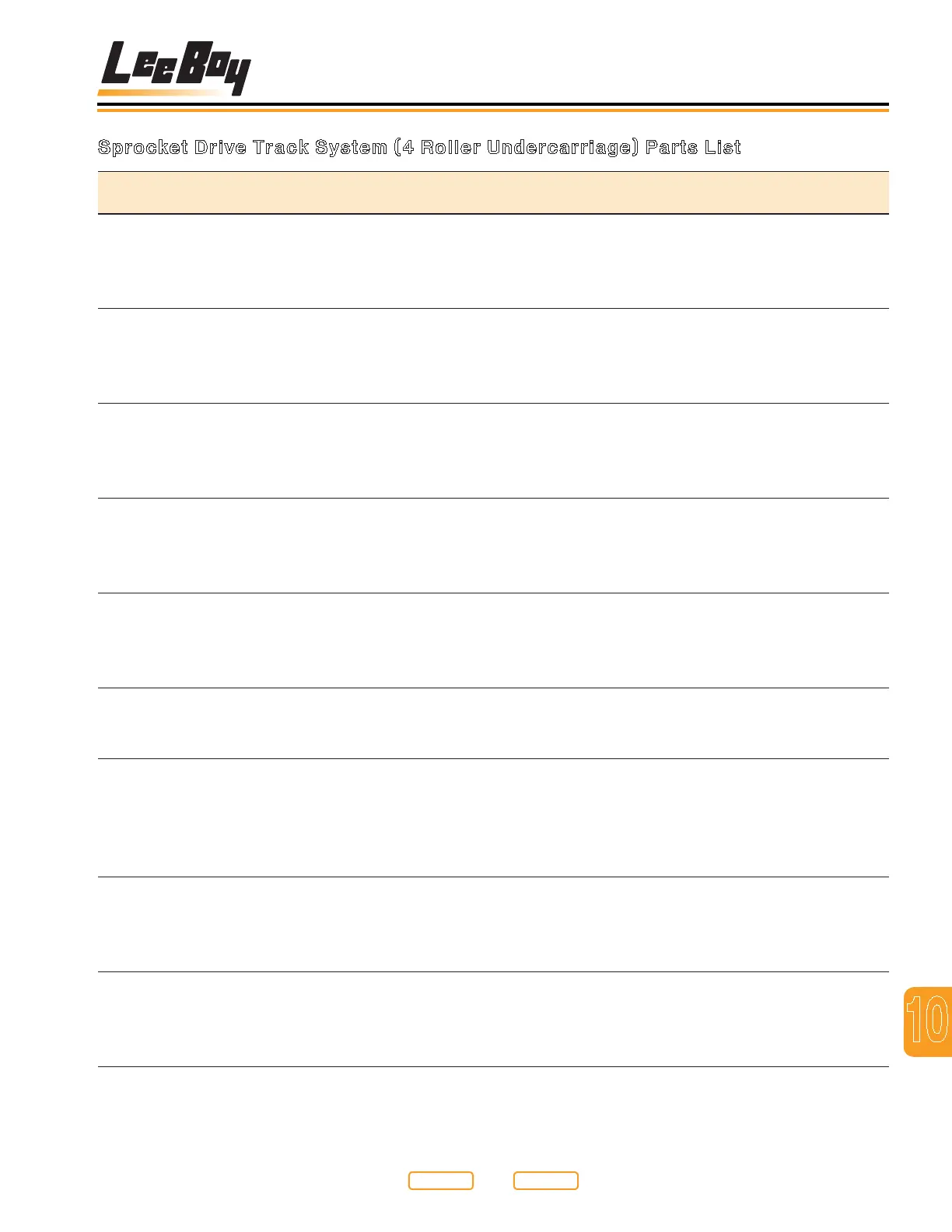 Sprocket Drive Track System (4 Roller Undercarriage) Parts List